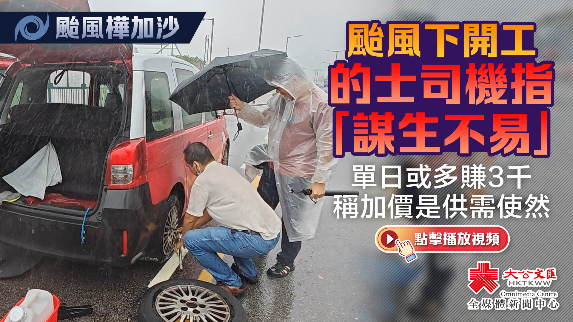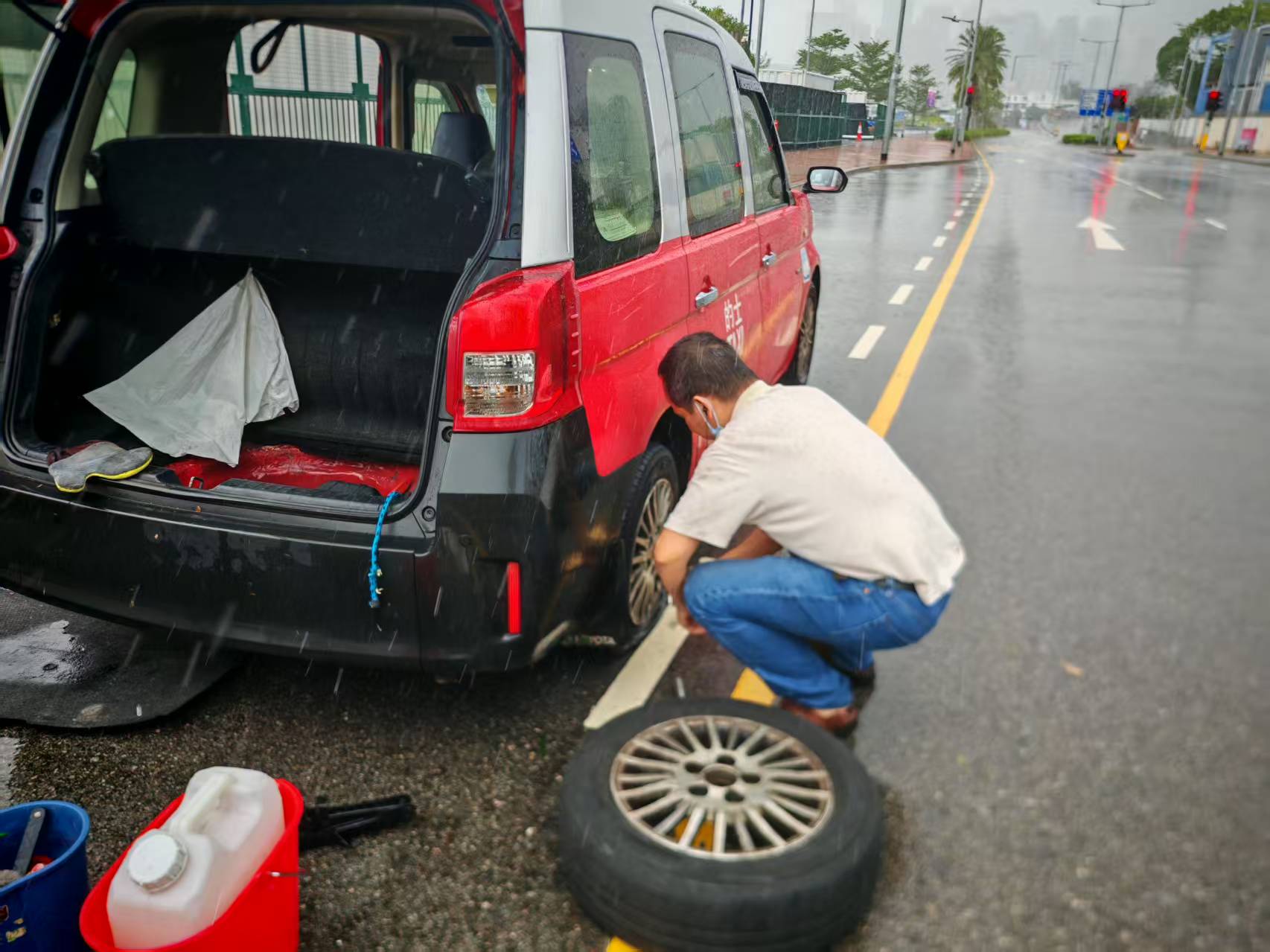 大公文匯全媒體記者今早分赴杏花邨、鯉魚門及將軍澳等「重災區」直擊受災情況。沿途上也有不少「小插曲」:記者所乘的士突然爆胎,司機沉着應對,迅速從後備箱取出工具維修,不久便重新上路。記者趁機與這位在10號風球下仍堅持開工的司機交談,了解風雨中「搵食」的艱辛。