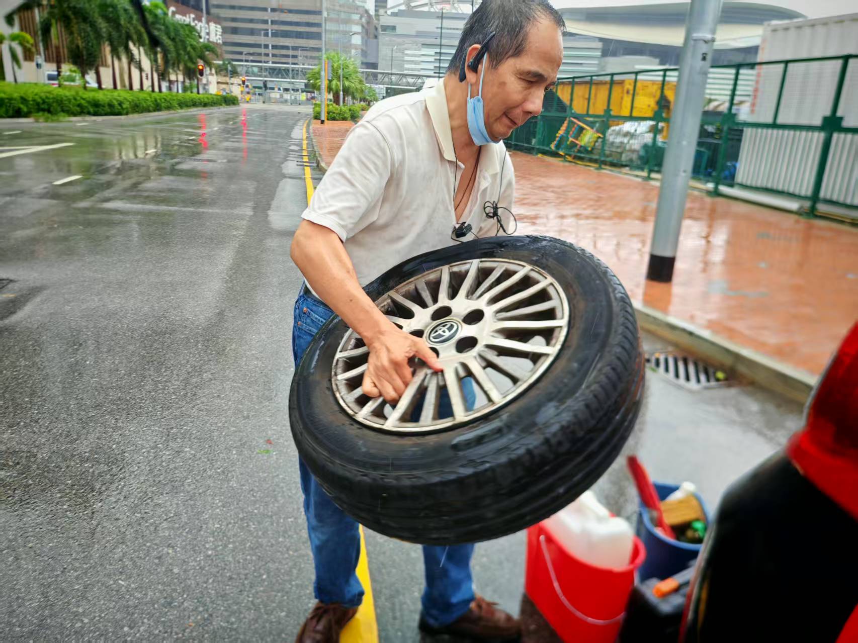 談及爆胎意外,司機表示颱風天會增加爆胎機率,「因為行車路面有大量殘枝,只要輪胎壓過垂直於地面的樹枝,就很容易爆胎」,他指自己車上長期準備維修工具,以備不時之需。