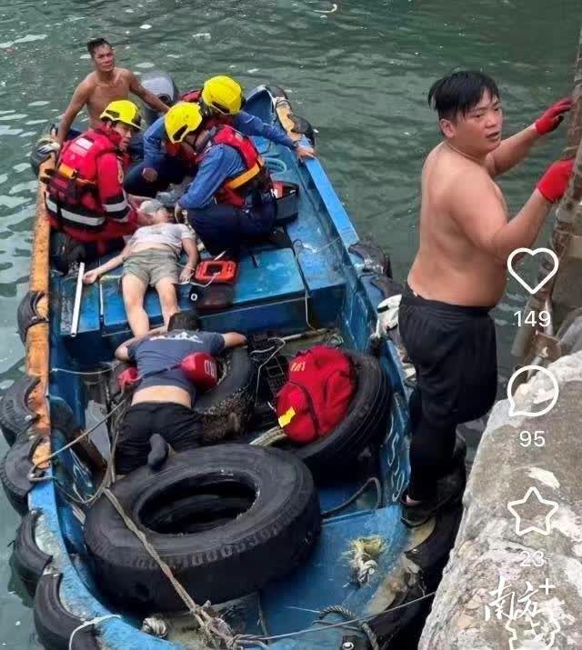 就在生死一線之際,一對來自深圳的港澳流動漁民父子迎浪而上,為落水家庭伸出了援手。施救者接受採訪時透露救人細節,並表示:「我們漁民都怕風,不要冒險去追颱風。」