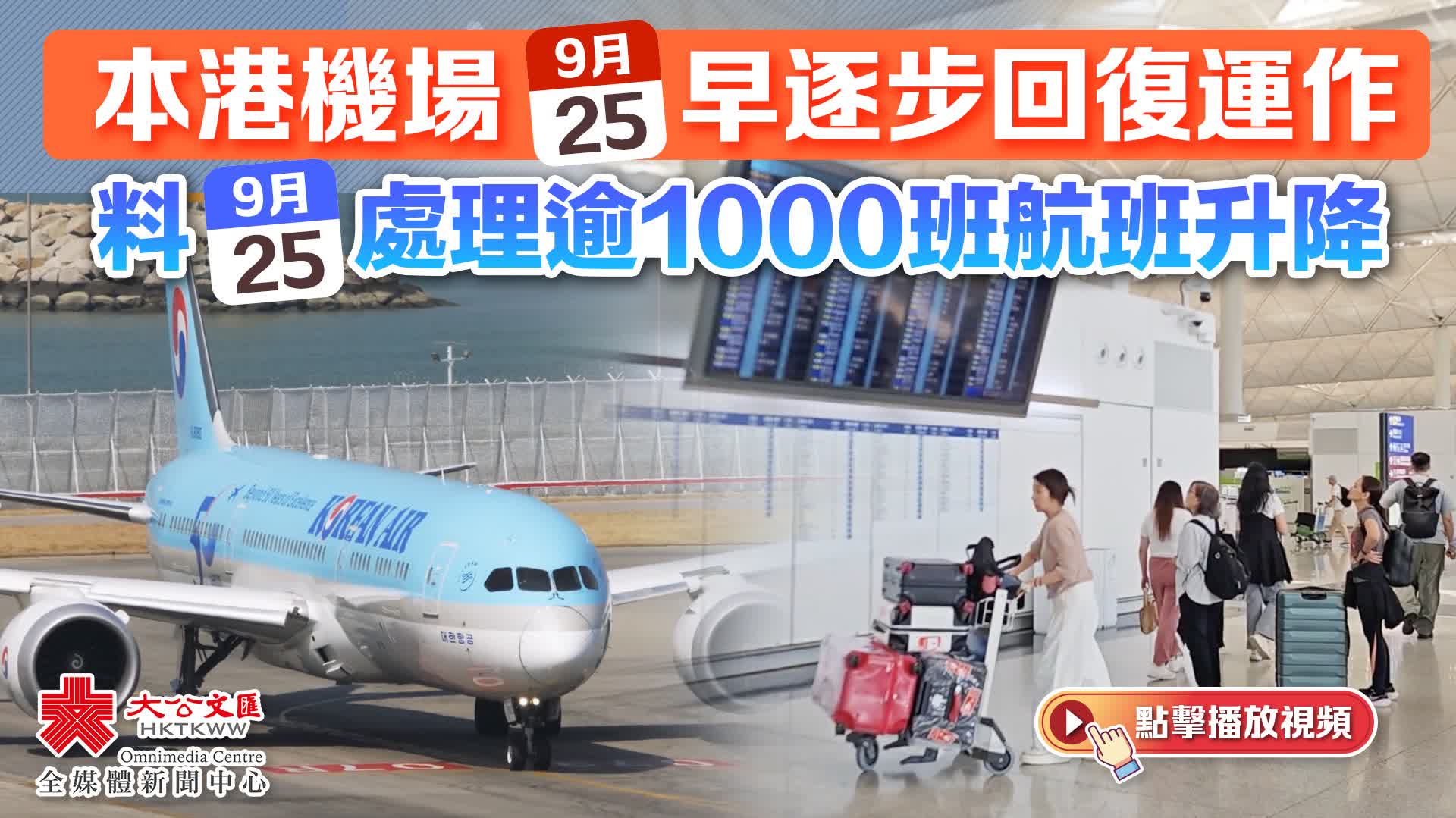 (大公文匯全媒體記者 盧葦)「樺加沙」正逐漸遠離香港,但烈風至暴風程度的東南風仍影響本港多處地區。機管局表示,今(24日)晚午夜前不會安排客運航班起降,航空公司計劃在明早6時後逐步恢復正常運作,預計明日航班編排將持續到深夜,機場將非常繁忙,料處理逾1000班航班。