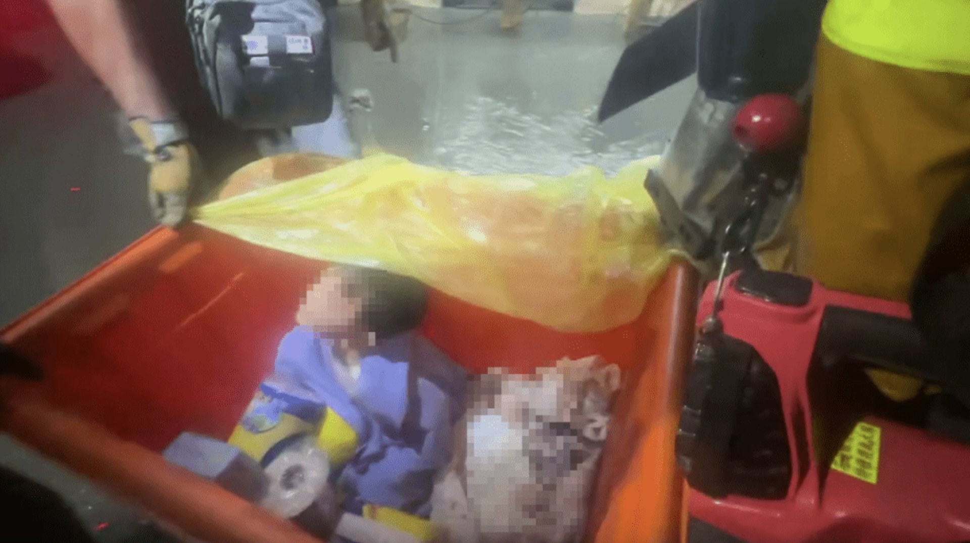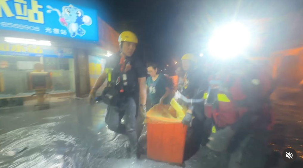 此外,當地的搜救行動從昨夜展開,有消防員夜間在敦厚路一處民宅救出受困民眾,其中包括一名孩童及一名剛出生的寶寶。網上流出現場畫面,顯示搜救團隊小心翼翼地搬運着橙色方形大水桶運送,消防員走在厚重淤泥當中,而裏頭坐着一名男童。