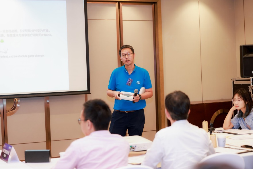 初創組路演現場,參評項目呈現出「AI產業化、產業AI化」的加速趨勢。華雲智能健康有限公司創始人謝玉龍針對傳統線性採血需求,展示了「AI無痛血檢機器人」項目。由於機器人裝載了32根極細採血針,兼具無痛、高效、智能等優勢,可實現一體化血檢,通過芯片和AI技術整合,提高智能健康行業創新度。他透露,項目已與部分醫院開展合作,目前雖未開放融資,但未來有計劃赴港上市,「我們希望打造一個智能化的血檢平台,除高血糖之外,癌症和阿爾茲海默症等篩查,只要更換生物芯片都可以適用」。