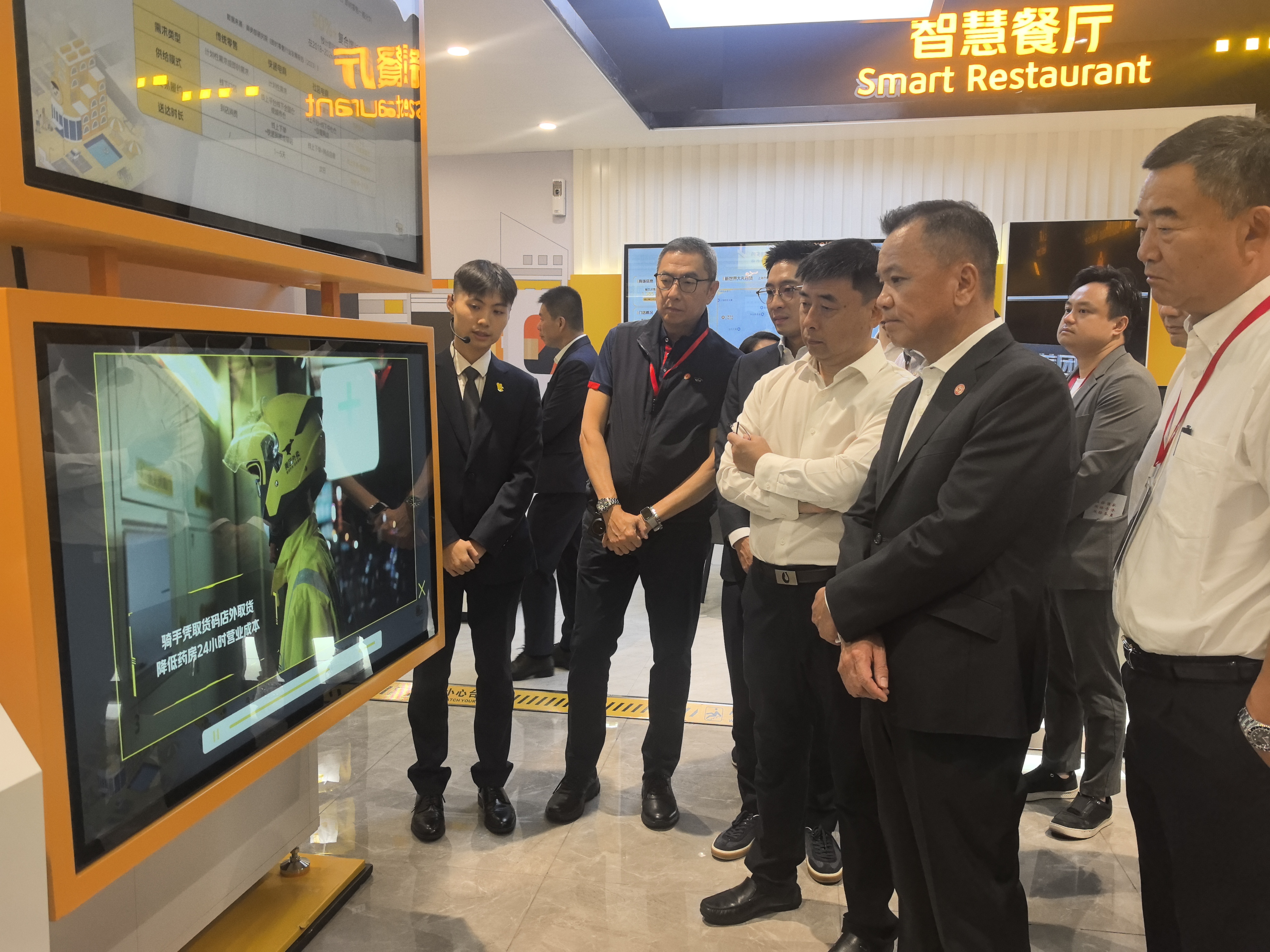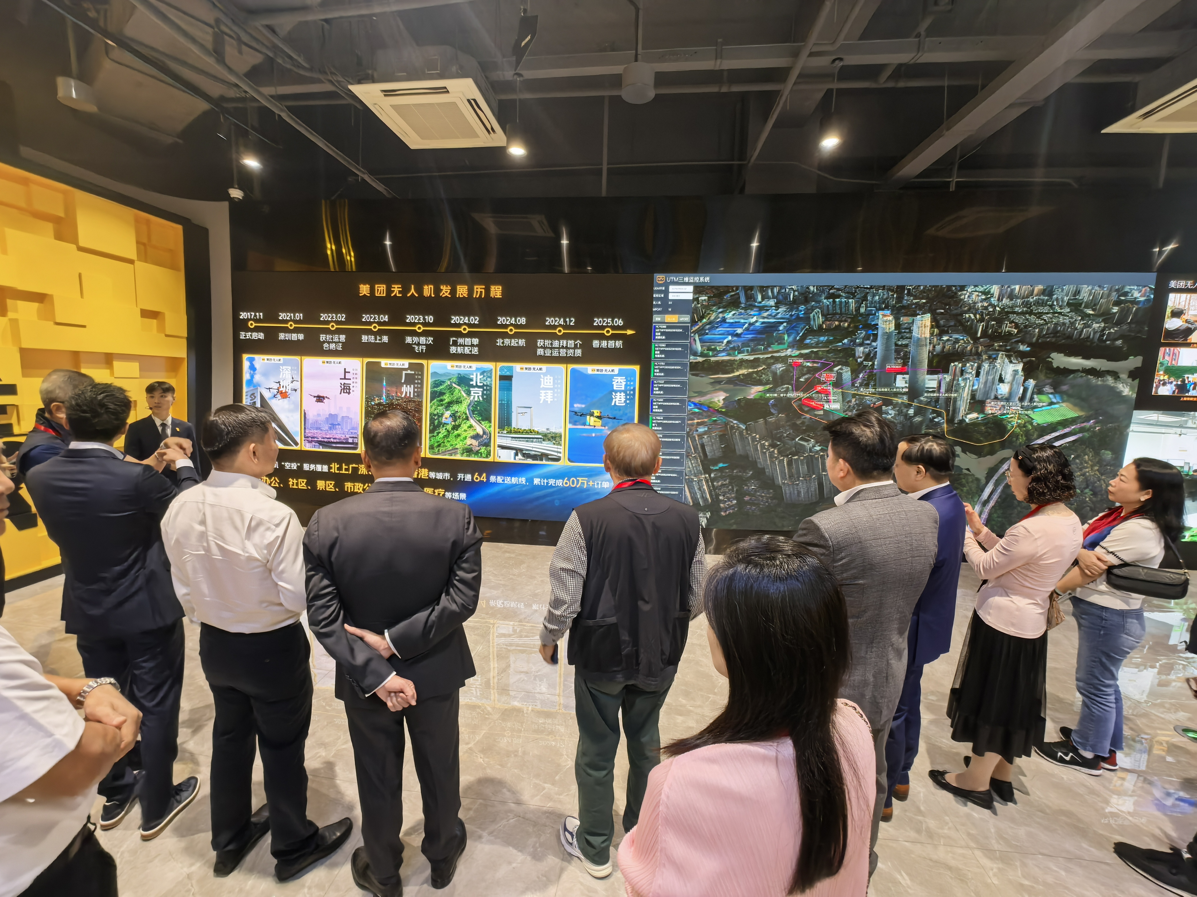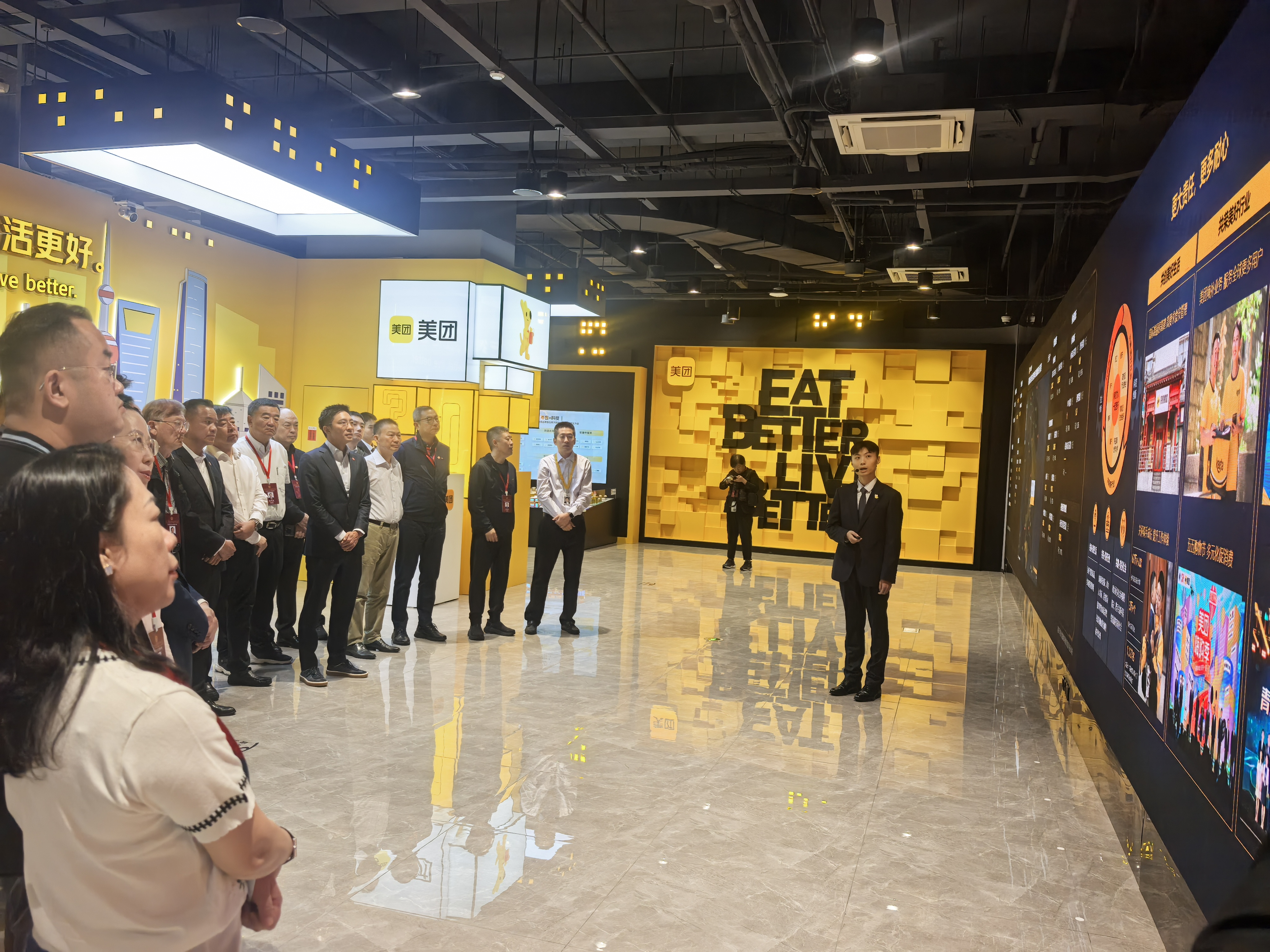 考察團首先來到美團綜合指揮中心參觀。這家成立於2010年的企業,對港人來說並不陌生。以發達的外賣運營網絡為公眾熟知的美團,2018年在香港港交所掛牌上市。2023年又在香港推出全新外賣平台Keeta,開啟國際化進程。現場有不少團員曾經在港使用過美團外賣服務,在工作人員的指引下,大家還登上美團開發的生活服務業數據運行平台,通過大數據實時了解各大城市居民的消費偏好和動態,並現場操作美團買藥。當聽說美團今年又在香港推出第一條無人機運送外賣的航線,大家對內地互聯網企業飛速發展和數字經濟給生活帶來的便捷化及其中蘊含的巨大機遇有了更直觀的感受。