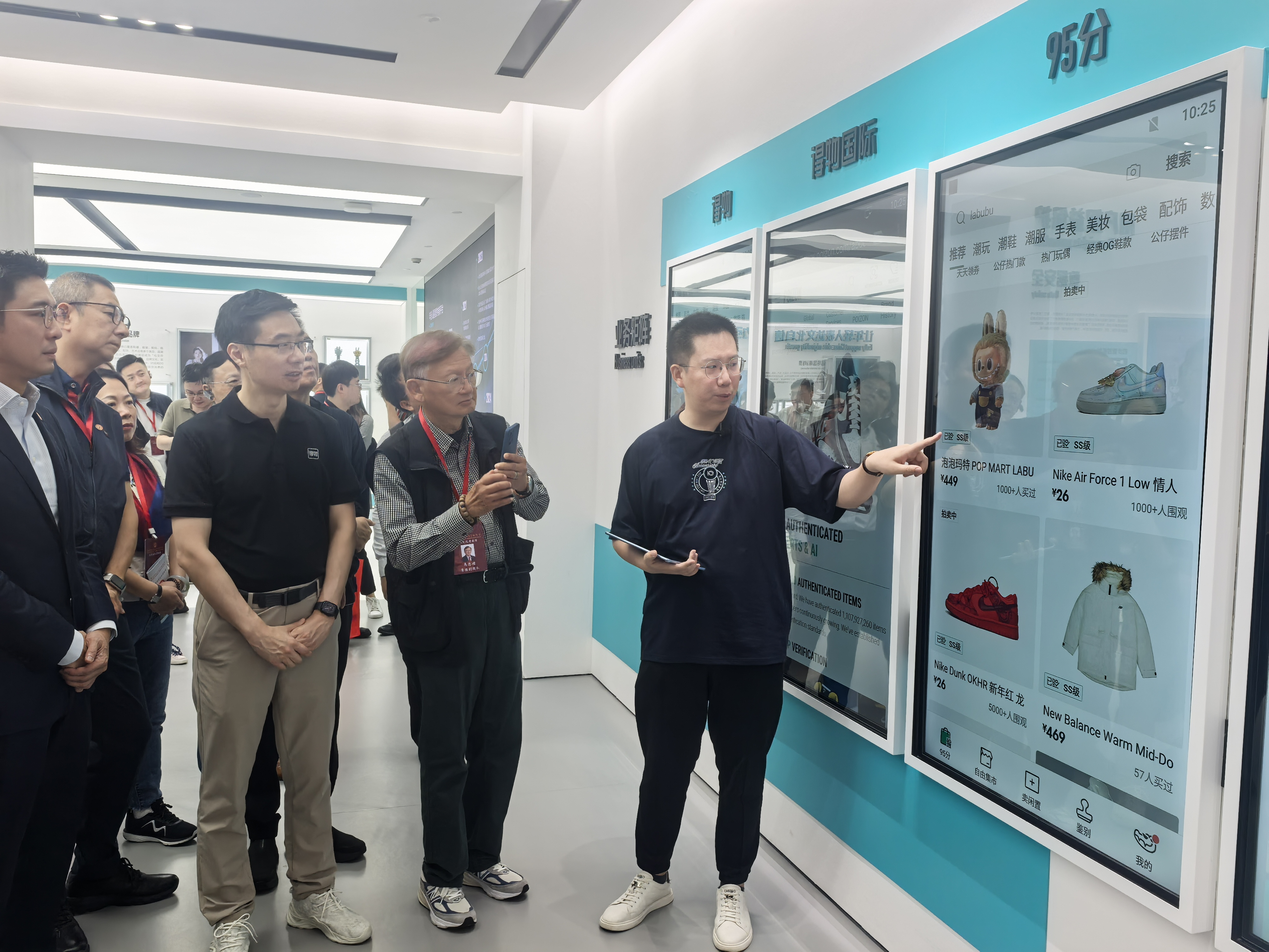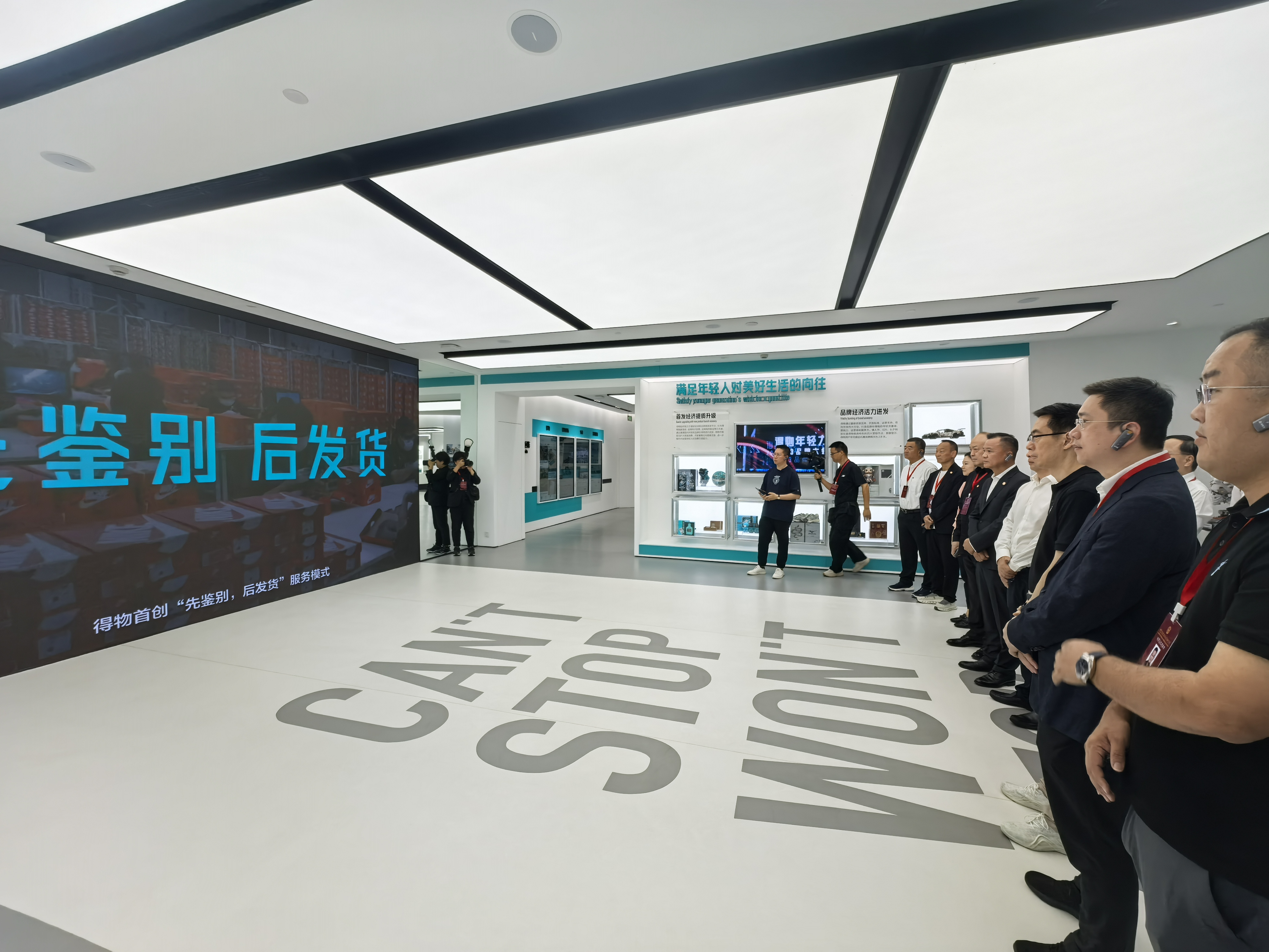 走出美團,步行數分鐘,大家又來到深受年輕一代喜愛的電商平台「得物」參觀。作為新一代潮流網購社區,「得物」除了幫助消費者更便捷購買到國內外最新潮流產品,還開創性地推出了無論是新品還是二手產品,均採用「先鑒別,再發貨」的購物流程,對電商貨品實現了「強中心化的平台監管」機制,探索出電商平台交易新模式,成為上海互聯網企業最新代表。考察團中有不少青年團員,對於企業推出的各種潮流資訊聽得異常認真。當聽說企業的鑒定服務已經拓展到寵物領域,不少人還紛紛拿出手機現場下載App並作了標記,要回去慢慢研究。
