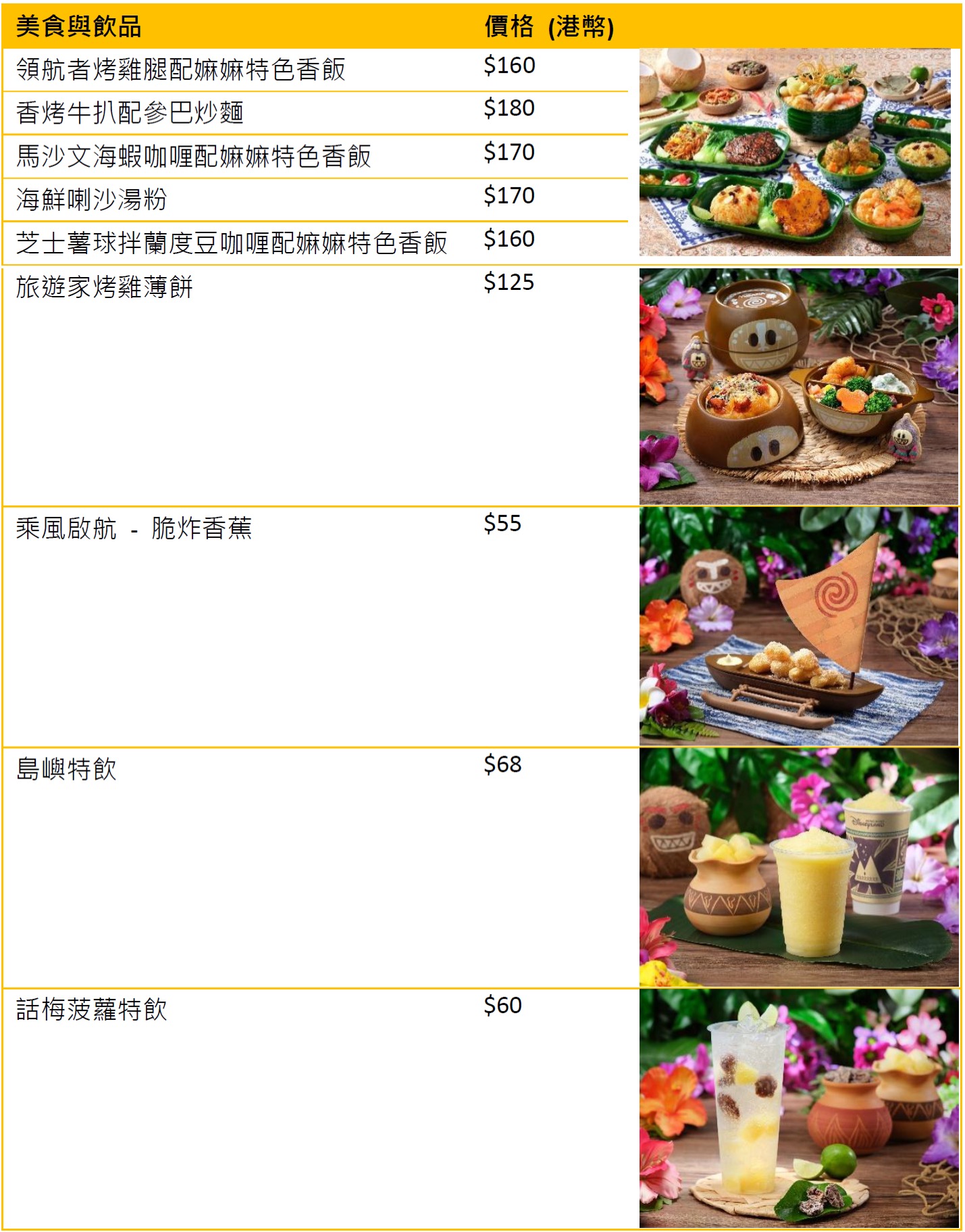領航者薈館推出一系列香港回教信託基金總會認證的美食。食材採用滋味海鮮、雞肉、牛扒等,融合泰國、印尼、新加坡及馬來西亞的經典風味,包括參巴炒麵、喇沙湯粉等地道經典佳餚。慕安娜粉絲絕對不能錯過椰殼海盜主題的「旅遊家烤雞薄餅」和清爽的「島嶼特飲」,而甜品「乘風啟航-脆炸香蕉」則以慕安娜的長途帆船為造型靈感,搭配香蕉椰絲炸餅。帆船上的帆更可讓粉絲帶回家留念,在享用美食的同時,也能收藏一份屬於自己的奇妙回憶。