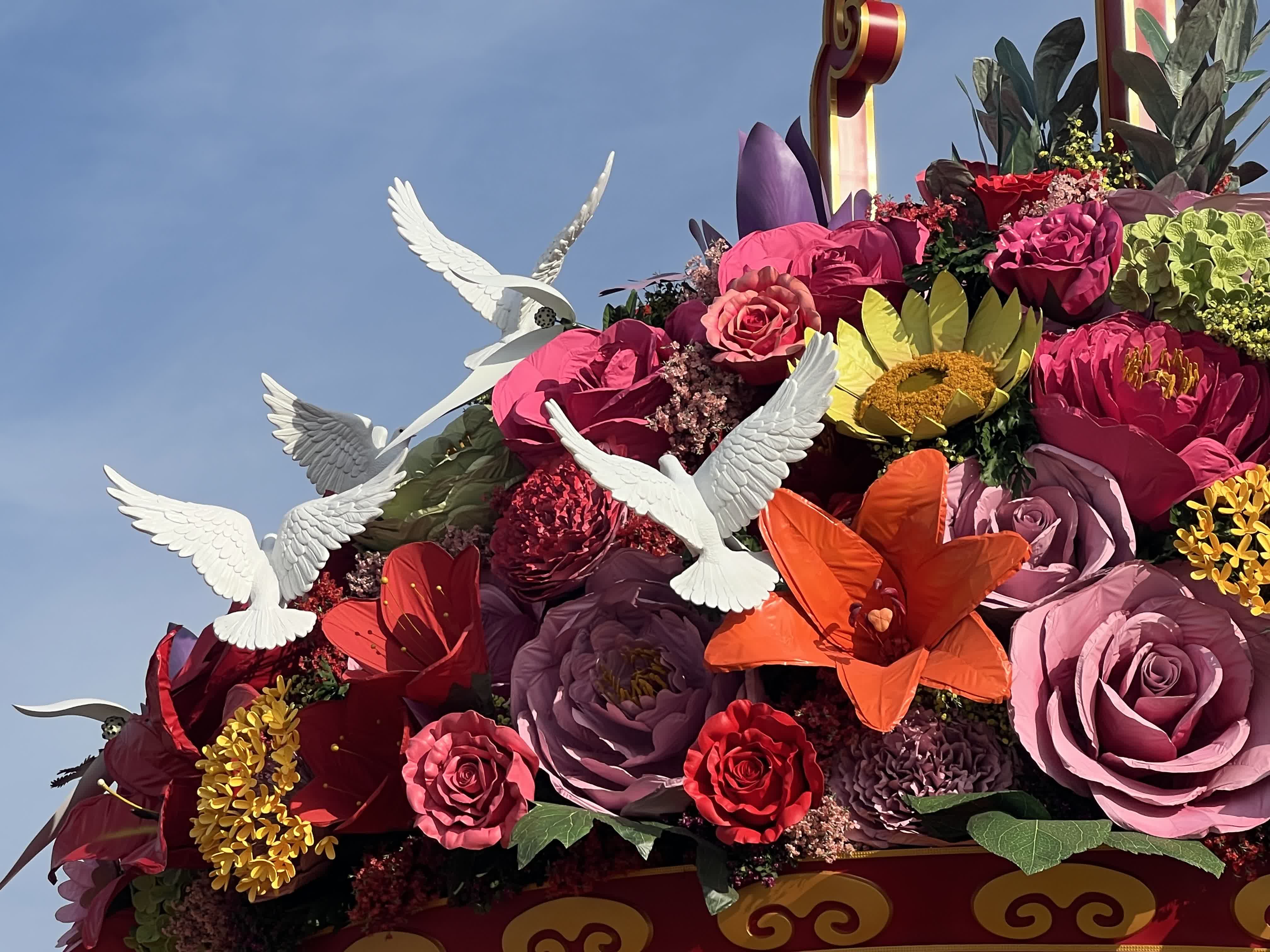 在京讀書的張同學告訴記者,自己和三位室友每年國慶前夕都會來天安門廣場的大花籃前合影留念:「花籃每年有新變化,今年的月季花很漂亮,增添的和平鴿的元素也非常亮眼,寓意着祖國繁榮昌盛,世界和平。」