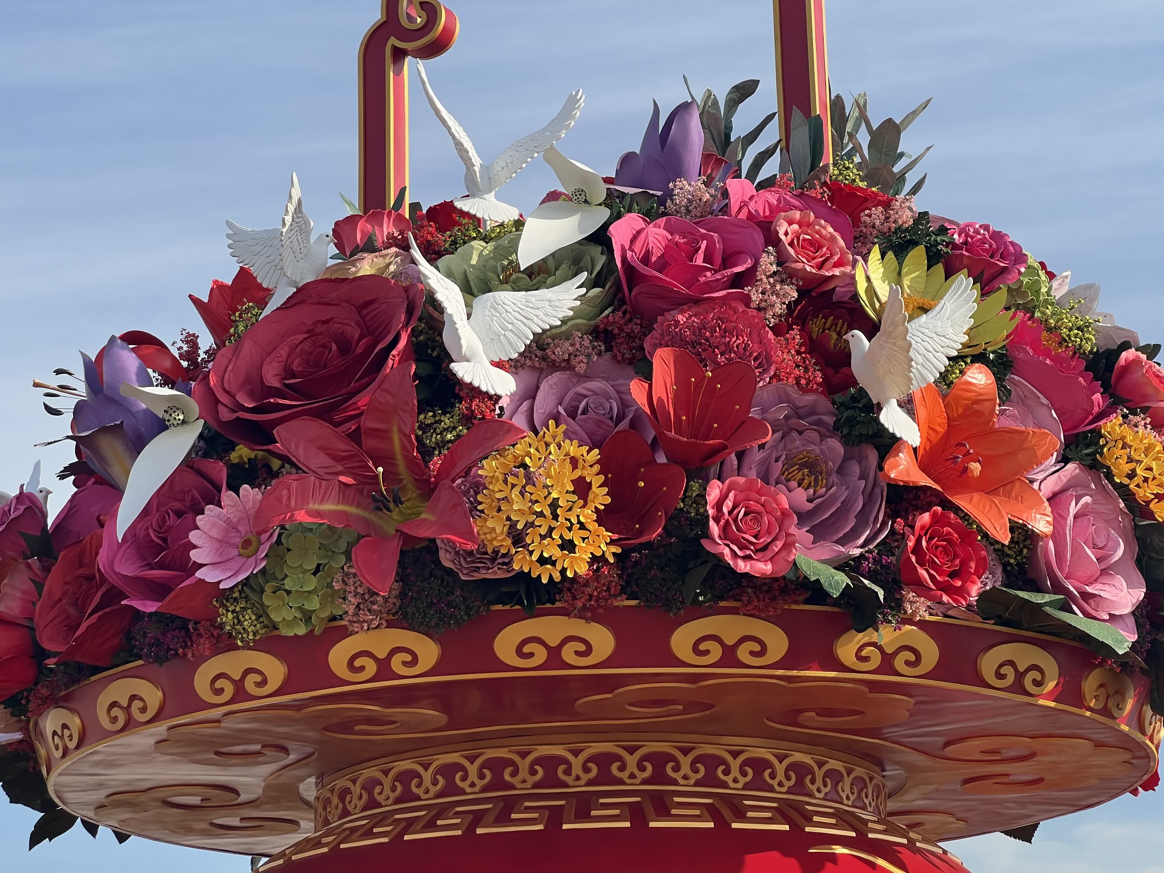 記者了解到,中心花壇大花籃今年首次採用市花月季作為焦點花,並選用了鳶尾、橄欖枝等新型植物材料,還首次應用了靈動的和平鴿造型,形成新亮點。