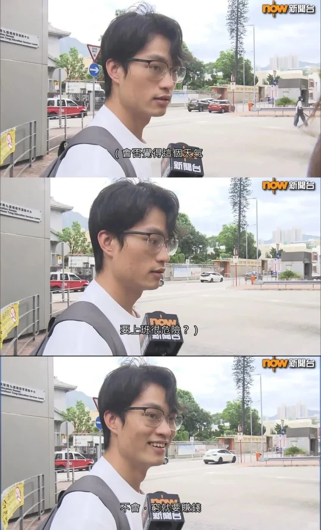 記者提問「會否覺得這個天氣上班很危險?」市民回應:「不會,窮就要賺錢。」