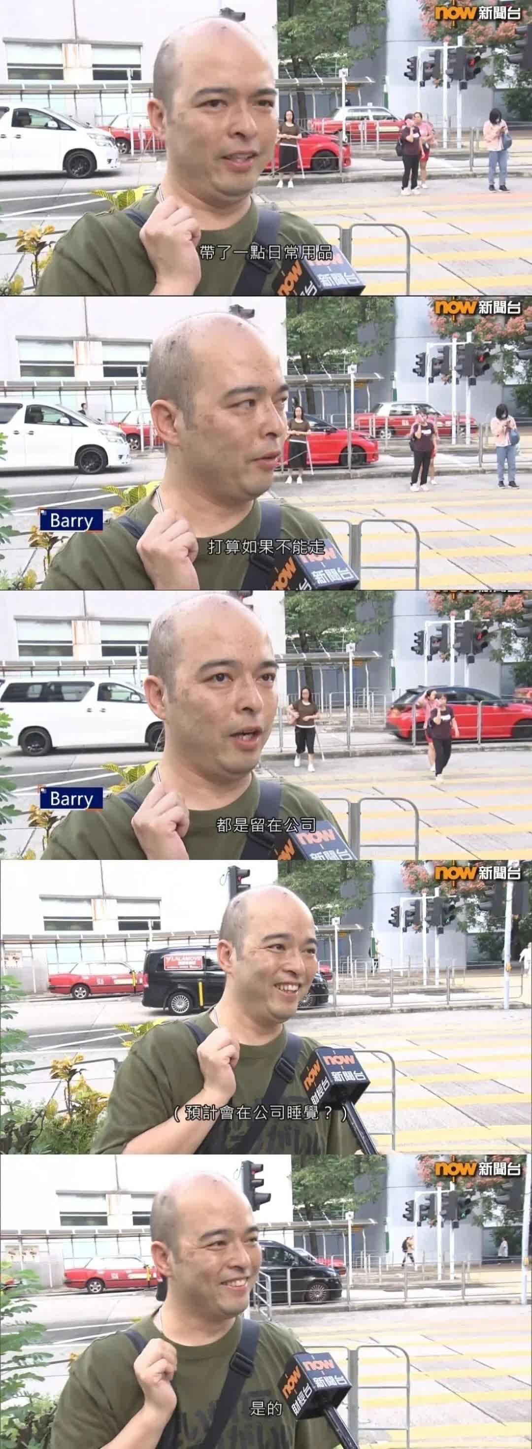 還有市民被問及如果(颱風強勁)不能走,是否預計在公司睡覺,面帶笑容答曰「是的」。