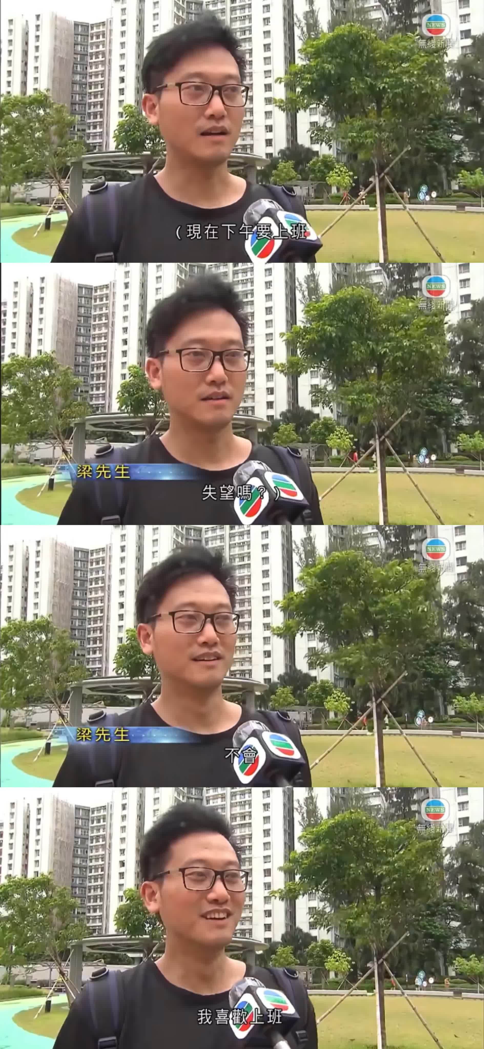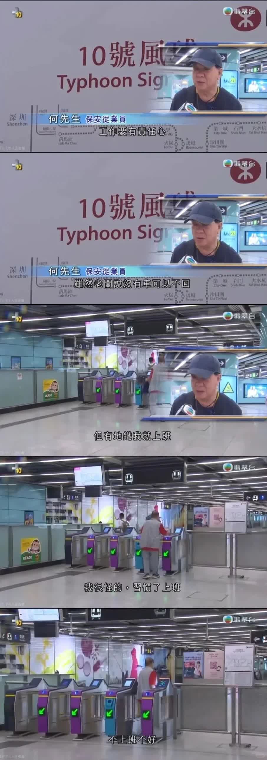 昨日一早,仍有香港市民陸續乘搭港鐵返工,市民何先生接受採訪表示,工作要有責任心,「有地鐵我就上班」。他還說,自己習慣了上班:「不上班不好」。