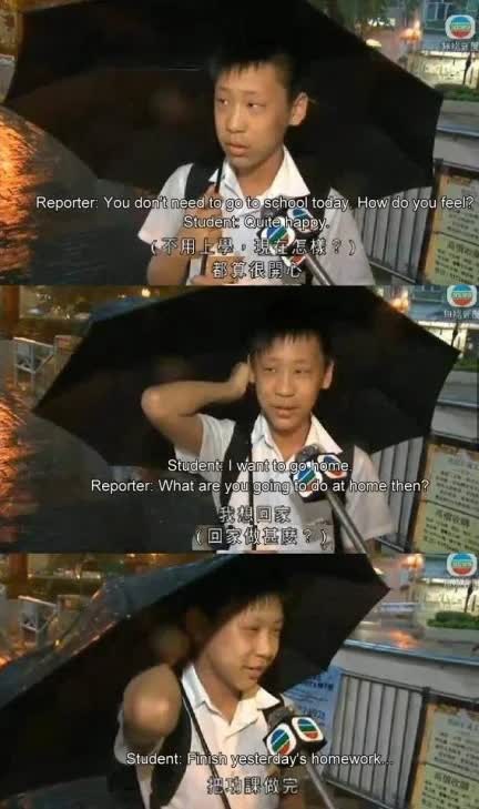 還有網友翻出古早採訪,有學生一大早到學校才發現今日停課,面對記者提問表示,想回家把功課做完。(那昨天是沒寫嗎?)
