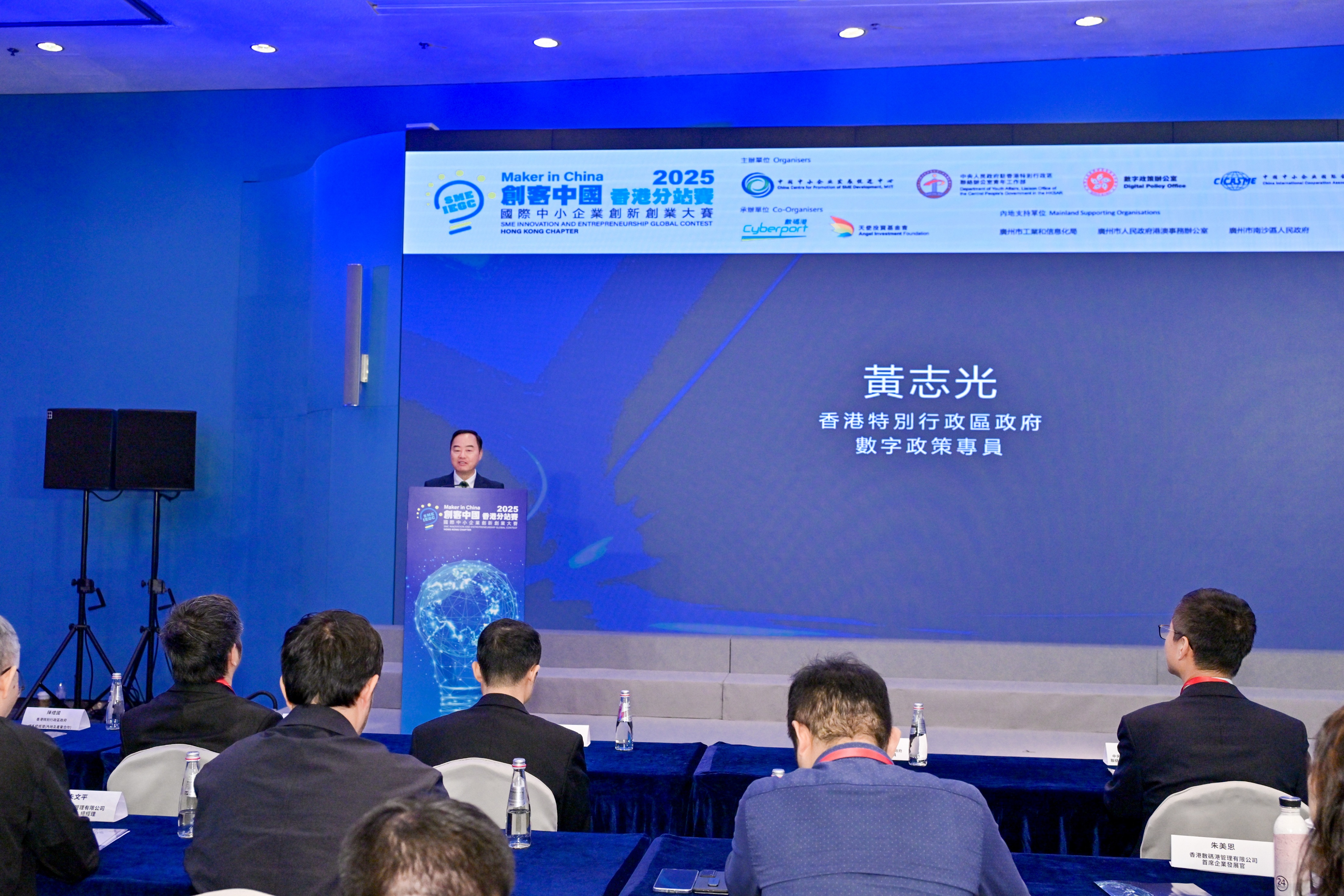 數字政策專員黃志光致辭時表示,為了對接國家的創科發展戰略,特區政府一直致力培育本港創科初創企業,壯大粵港澳大灣區(大灣區)的創科實力。「創客中國」香港分站賽正好為香港的初創和中小企業進軍內地市場、拓展商機提供了一個強效平台。近年不少獲獎香港團隊透過「創客中國」這個平台成功與多家內地企業對接,進駐內地,在多個大灣區城市,以至杭州、西安和北京建立了分公司和銷售網絡。此外,許多隊伍在參加「創客中國」香港分站賽後,獲得內地企業和投資者的青睞,簽訂採購合約或達成合作戰略協議,使他們的創科產品和方案順利落地到內地不同省市。