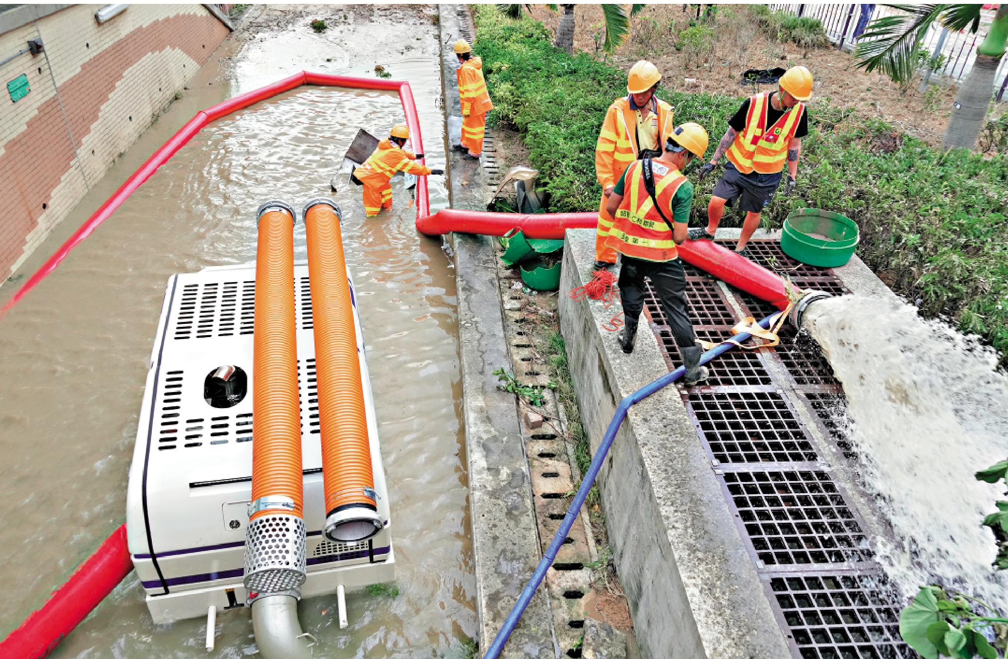 香港社會高效運轉起來:渠務署提早派員到全港約240個較容易淤塞引致水浸的地點檢查及清理,同時增加緊急應變隊伍至200隊,提早派遣強力排水機械人到多個水浸黑點戒備,並為水浸風險較高地區,包括大澳、鯉魚門、三門仔等提供額外沙包;屋宇署啟動特別應變行動,巡查位處主幹道旁的私人建築地盤,提醒承建商做好防禦措施,又巡查主要街道並清拆明顯破損的招牌;各區民政事務處提早開放臨時庇護中心,並動員區議員、地區「三會」委員及關愛隊隨時候命。政府各部門堅守崗位,全方位部署,緊密協作,致力減輕風暴帶來的威脅和影響。