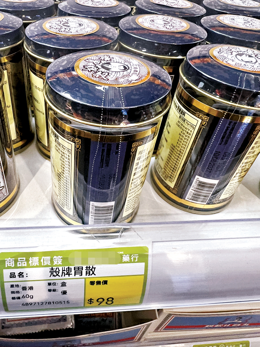 藥行力推的兩款產品,北京安宮牛黃丸和澳洲深海純角鯊烯,均由恒×藥業有限公司獨家代理。此外,該藥行還出售多款其他藥房未見的藥油,同樣由恒×代理。