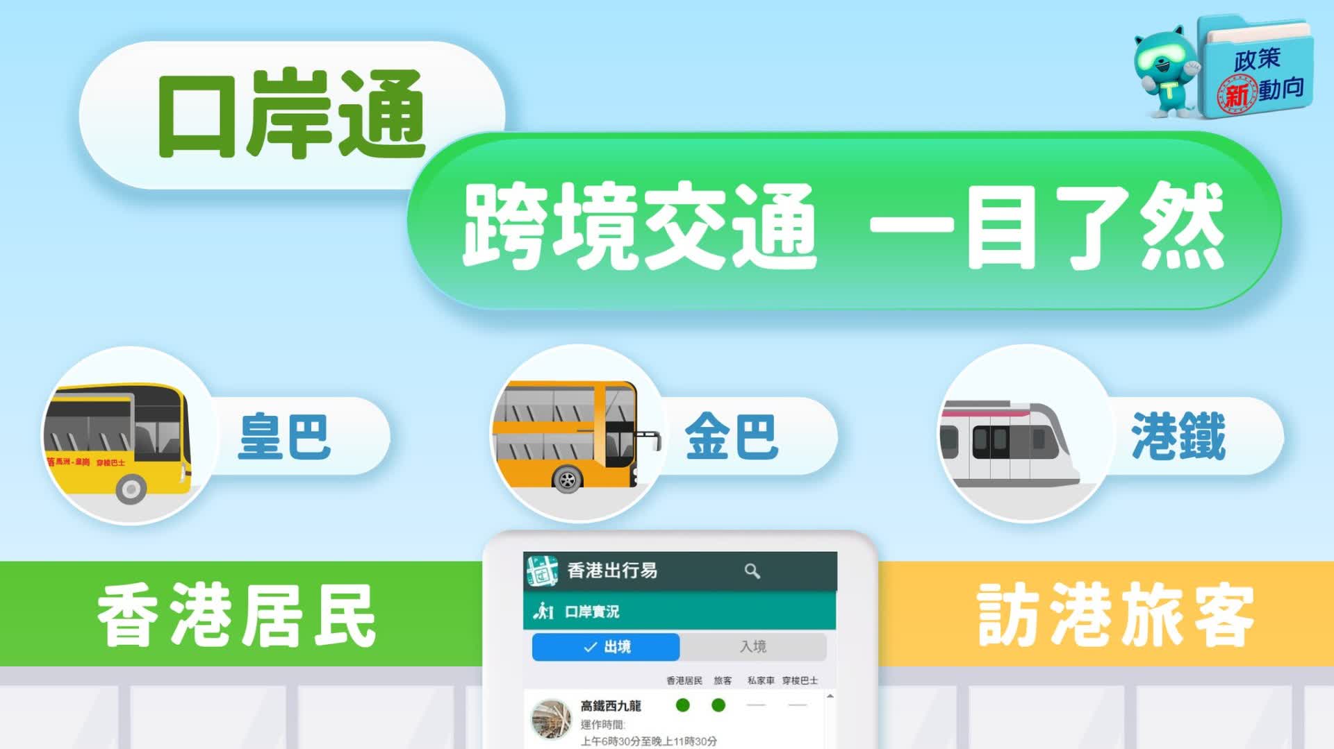 運輸署說,「口岸通」以綠、黃、紅燈號顯示各陸路口岸的過關情況、一次過了解各陸路口岸旅客和設有私家車過關的平均輪候時間、港珠澳大橋過境穿梭巴士(金巴)、落馬洲—皇崗過境穿梭巴士(皇巴)和港鐵服務情況及輪候時間,亦有鄰近口岸的主要道路交通情況與接駁港九新界多區的公共運輸服務資訊。