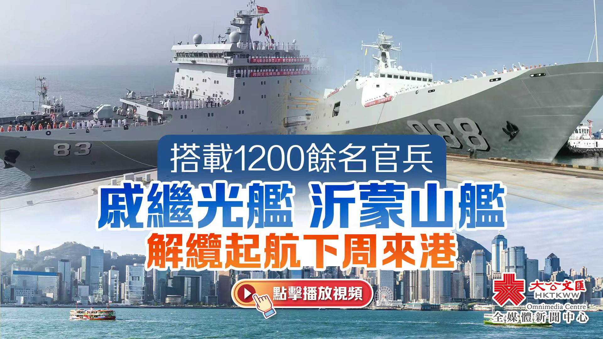 經中央軍委批准,本月底,海軍戚繼光艦、沂蒙山艦將執行遠海實習任務,其間赴香港組織艦艇開放活動。屆時,艦艇停靠駐香港部隊昂船洲軍港,歡迎市民前往參觀。