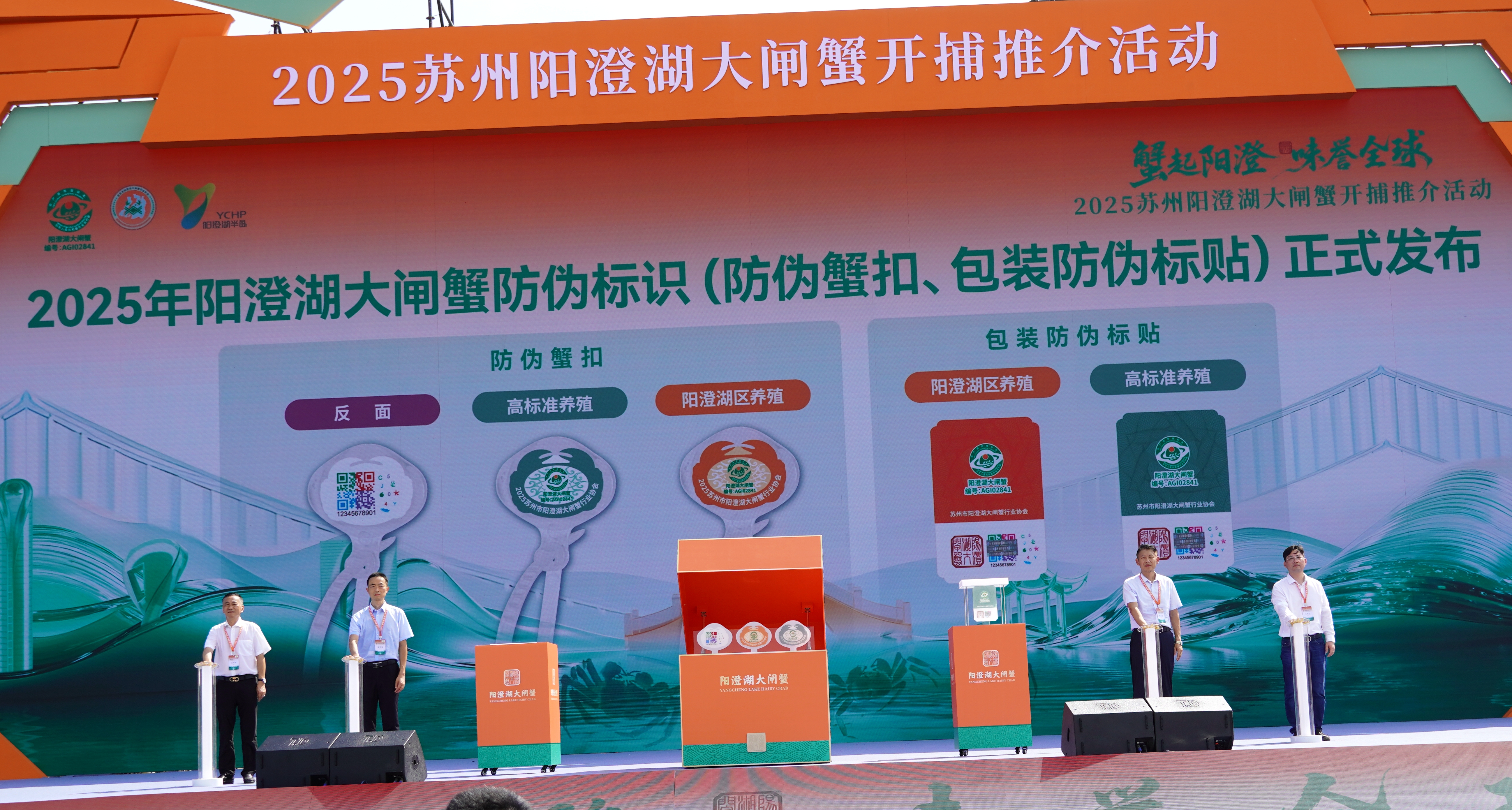 今年陽澄湖大閘蟹產量比2024年增長450噸。開捕儀式現場公布的2025年新版陽澄湖大閘蟹防偽標識(蟹扣、防偽標貼)成為關注焦點。「我們更堅決打擊各類混淆宣傳,要讓『假蟹』無處蹭熱、無隙可鑽。」顧東華表示,陽澄湖大閘蟹防偽技術已全面升級,綁定經營者和養殖戶信息,掃描二維碼,所有信息清晰可見;銷售數據實時監管,誠信經營,銷售熔斷機制嚴防超賣超發。