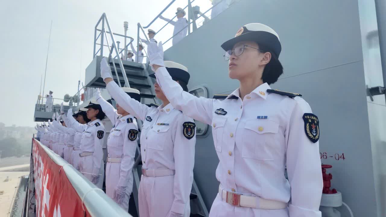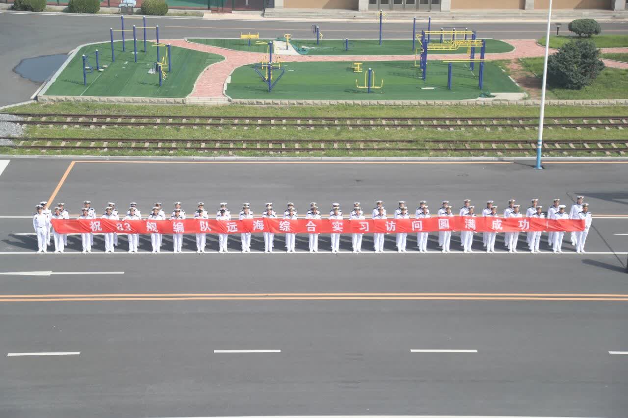 10時許,伴隨着激昂的軍樂聲,戚繼光艦和沂蒙山艦緩緩駛離碼頭。艦舷邊,學員們軍容嚴整、分區列隊,與戰友揮手告別。此次隨艦實習出訪的學員,來自海軍大連艦艇學院、海軍潛艇學院、海軍軍醫大學3所海軍院校,包含5名海軍大連艦艇學院外籍軍事留學生,他們全程與中方學員混編同訓。