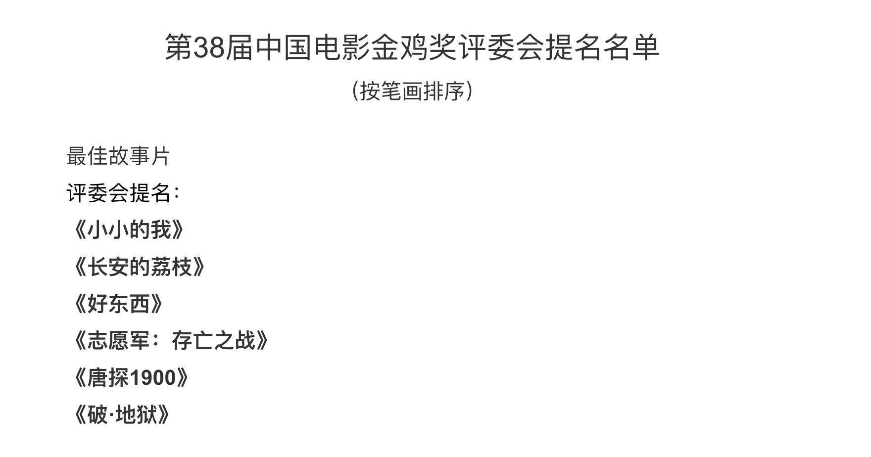 大公文匯全媒體報道,第38屆中國金雞百花電影節將於11月11日至11月15日在廈門舉辦。主辦方今日(26日)公布金雞獎提名名單。