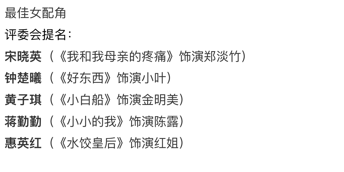 從提名名單來看,今年金雞獎呈現出類型多元、題材豐富的特點。而今次最佳女主角及最佳男主角將花落誰家,大家拭目以待。