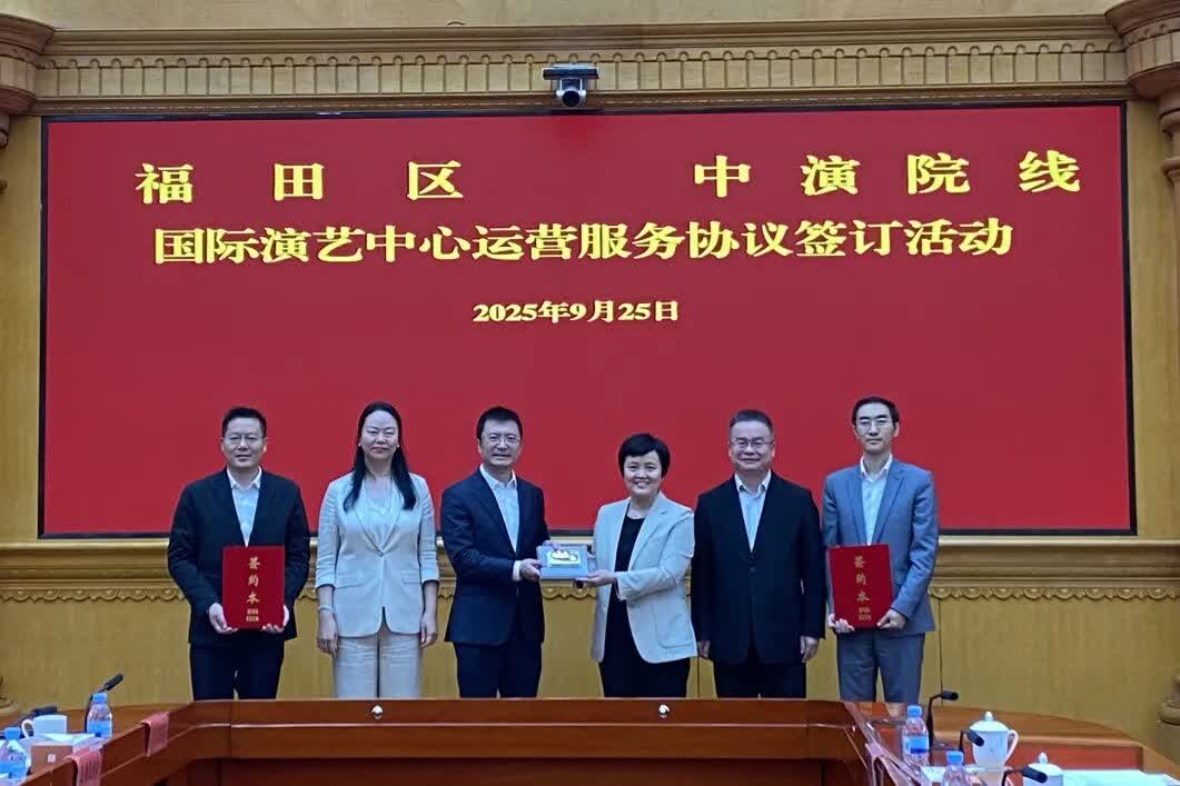 9月25日,中演演出院線發展有限責任公司(以下簡稱「中演院線」)與深圳市福田區人民政府正式簽署深圳國際演藝中心運營服務協議。深圳市政協副主席、福田區委書記黃偉,區委常委、宣傳部部長、二級巡視員章海蓉,紫荊文化集團黨委委員、副總經理薛麗軍,中國對外文化集團黨委副書記、董事、總經理郭利群,紫荊文化集團業務管理部副部長盧偉斌,中演院線常務副總經理洪寧以及福田區委區政府等領導嘉賓出席簽約活動。