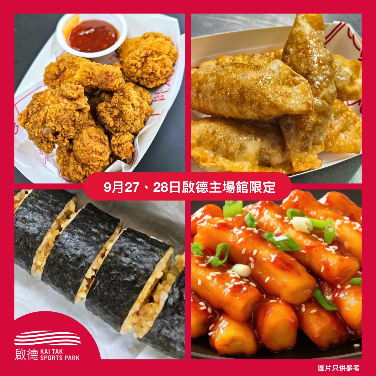 啟德主場館內的美食站精心呈獻多款韓式美食,在今次演唱會為觀眾帶來一場獨特的味覺盛宴,絕對不容錯過!從香辣年糕、脆炸雞槌配甜辣醬,到蒜香豬肉紫菜飯卷及炸韓式豬肉餃子,相信每一道美食都能令觀眾沉浸於視覺、聽覺與味覺的享受中,讓每一口都成為你難忘的體驗!