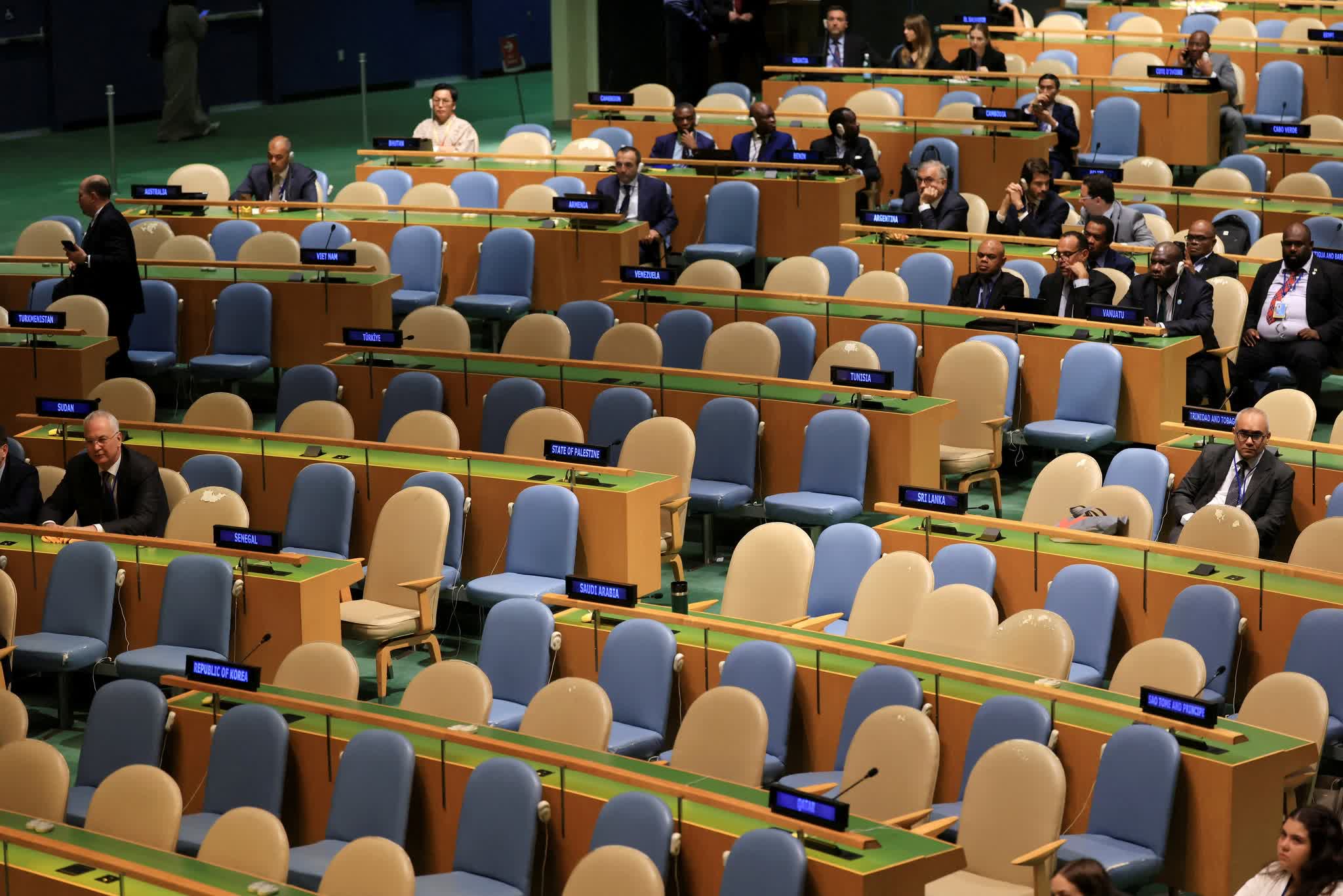 當天,內塔尼亞胡第一個走上發言台,眾多落座不久的聯合國會員國代表立馬起身離席,從不同方向退場抗議,數人徑直從內塔尼亞胡面前走開。代表席頓時空空蕩蕩。