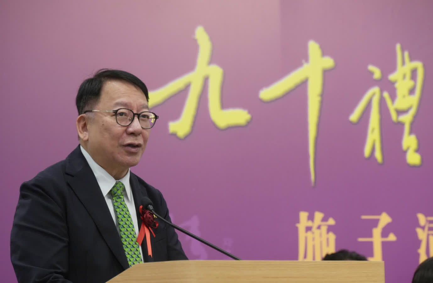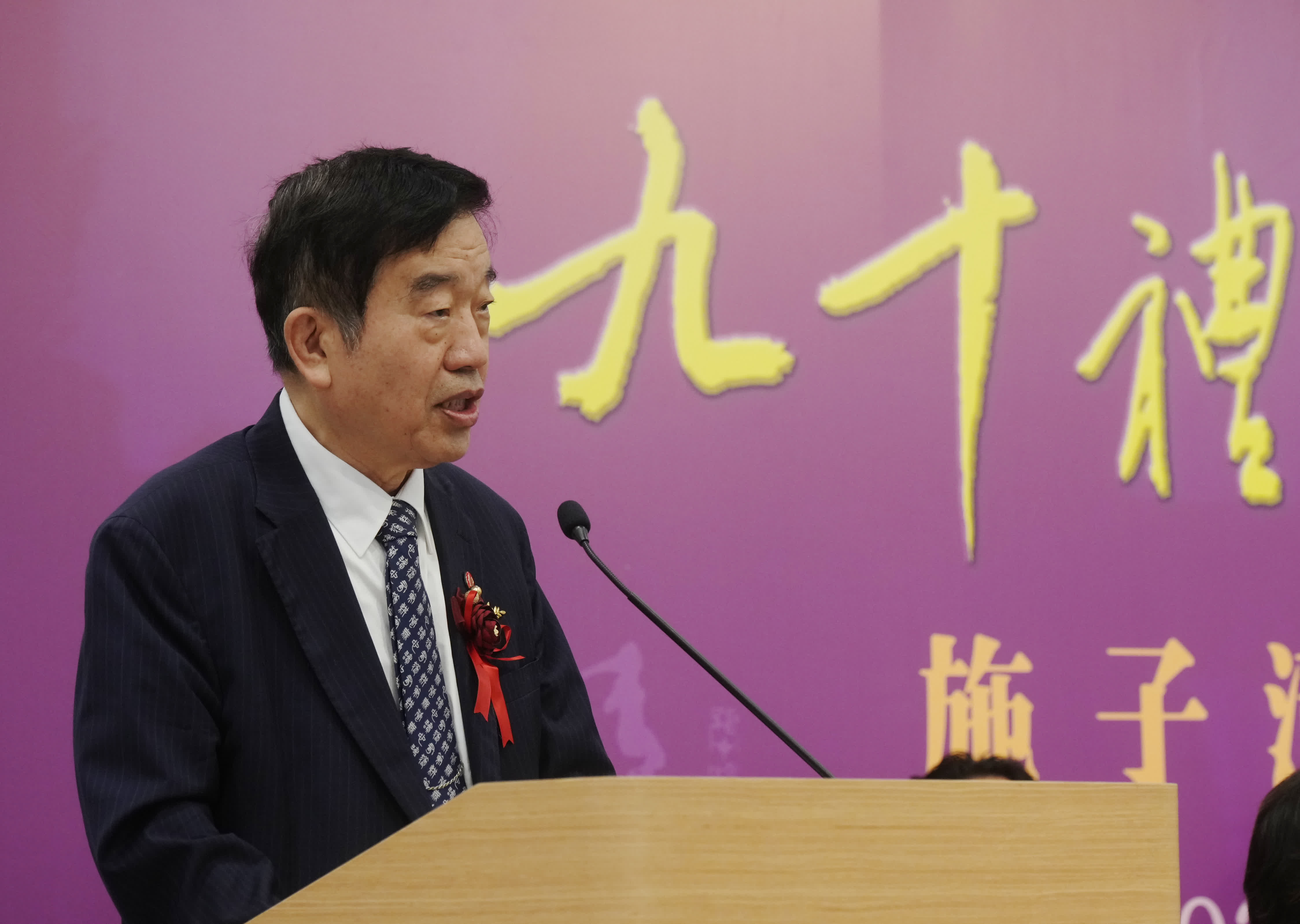 政務司司長陳國基致辭時表示,這次書法回顧展適逢施博士九十大壽,展出120件佳作,不但展示了書法藝術的技法,更呈現中華文明的精神與面貌。今次展覽是施博士與香港故宮文化博物館的再次合作,藉香港作為中外文化藝術交流中心的獨特地位,將書法這種中華文化獨有的藝術推廣開去,讓更多人能在欣賞書法作品的同時,加深認識中華文化源遠流長的歷史和思想內涵,細閱以筆墨書寫的中國好故事。