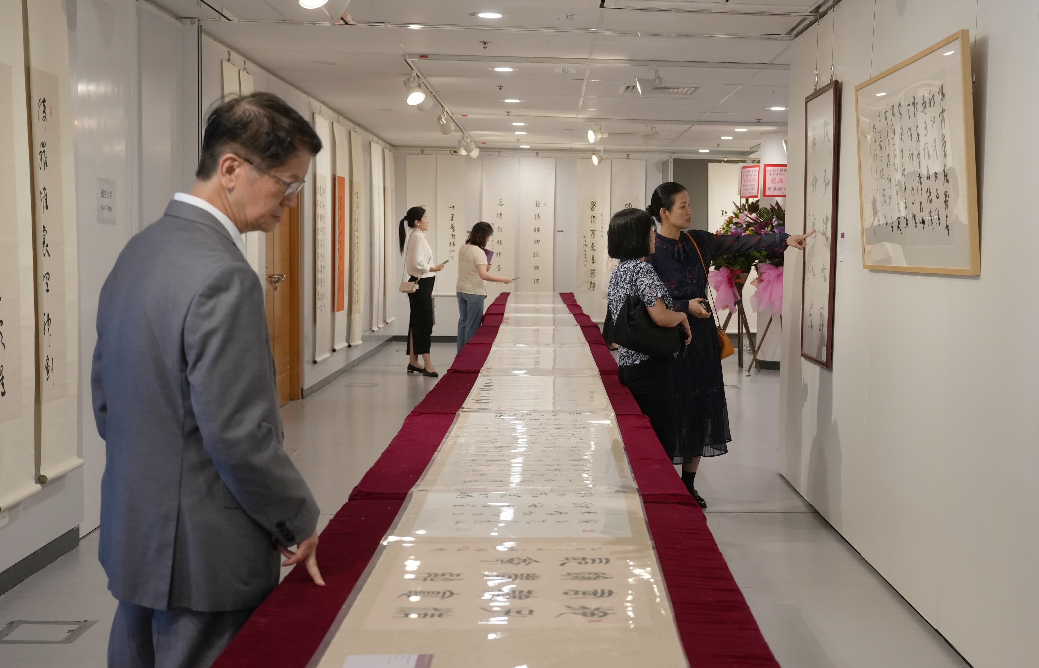 陳國基表示,去年公布的《文藝創意產業發展藍圖》,為香港文化藝術與創意產業的長遠發展指明方向。香港會舉辦及支持更多大型、多元的文化藝術活動和合作,為中外文化藝術交流搭建平台,推動中華優秀傳統文化的傳承與弘揚。書法是中華文化的重要載體,承載着民族精神,也凝聚着文化自信。本屆政府全力推展愛國主義教育,在社會厚植愛國情懷,而文化自信和自豪感,正正是凝聚我們齊心貢獻國家,建設香港的精神命脈和力量泉源。