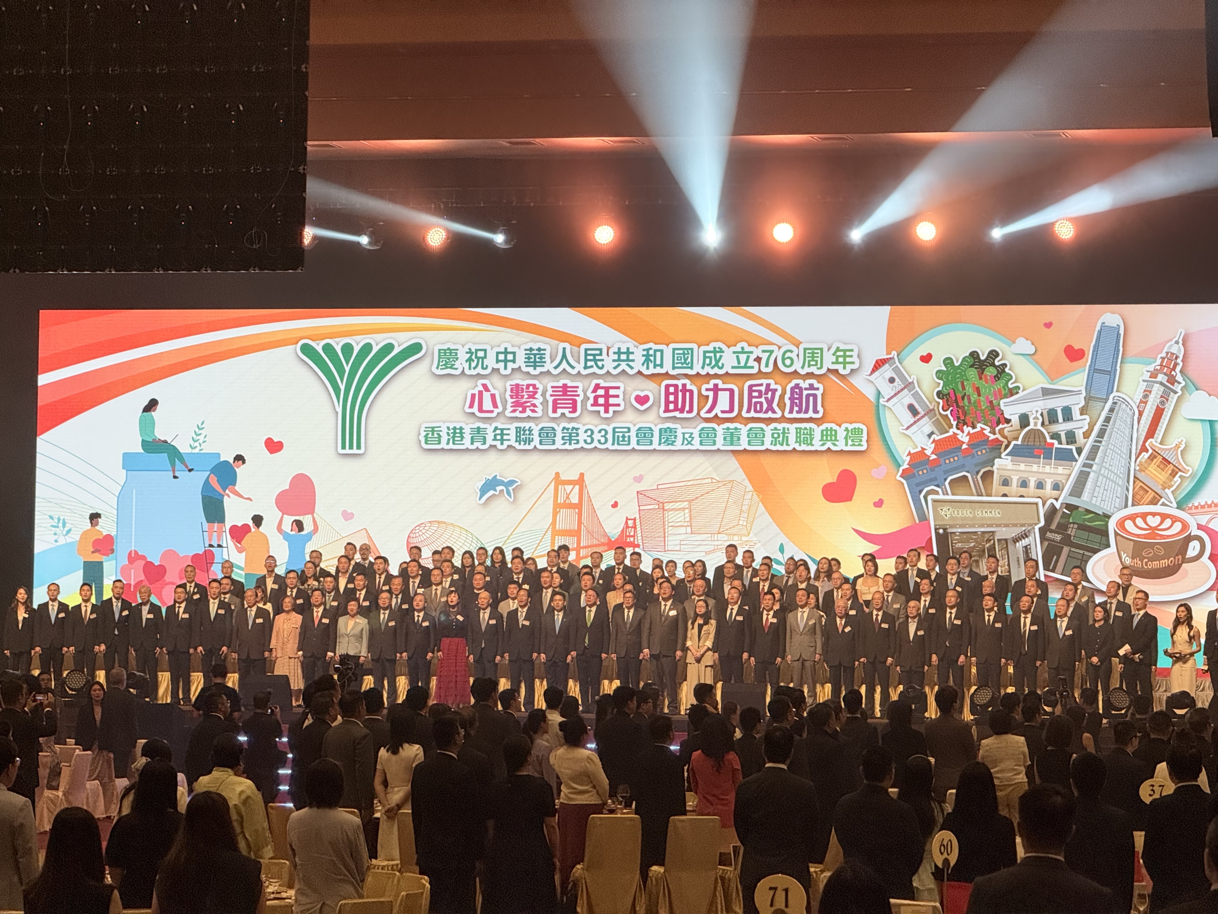 (大公文匯全媒體 記者 周禹含)「慶祝中華人民共和國成立76周年 『心繫青年 助力啟航』香港青年聯會第33屆會慶及會董會就職典禮」今日(27日)假會展中心舉行。「Youth Common」青年客廳計劃今日正式啟動,預計年底推出,提供多元化設施及活動支持青年發展。