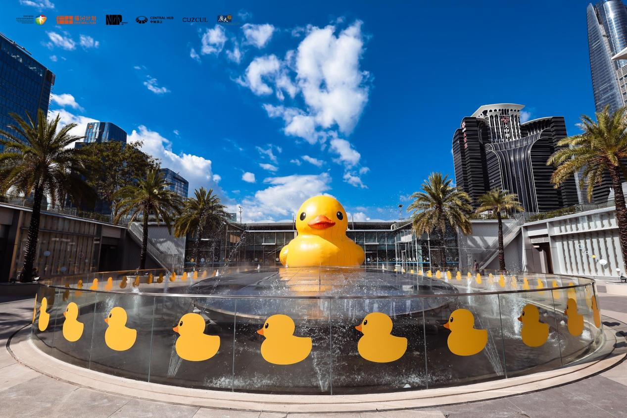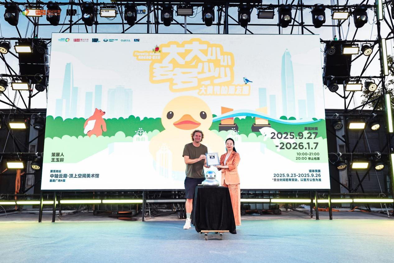 今年是深圳經濟特區成立45周年和福田建區35周年。展覽開幕活動上,霍夫曼將編號「35號」「45號」兩隻具有特殊意義的收藏版大黃鴨贈予深圳福田區,以此送上誠摯祝福。
