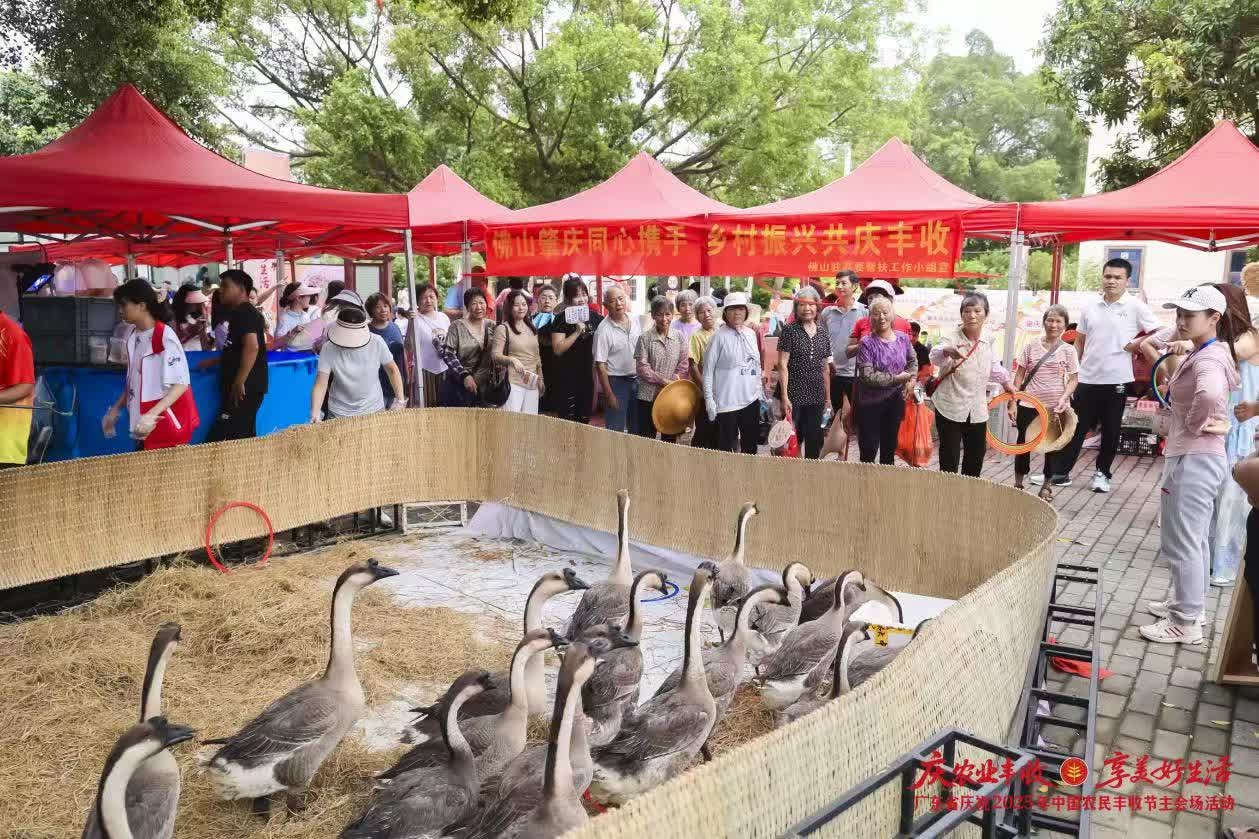 現場還打造了「豐收集市」,設置廣東21地市農特產品展區、肇慶8縣(市、區)產品展區和高要產品展區,讓群眾「一站式」嘗遍嶺南「豐」味。肥美的高桂蝦、奇香的菠蘿蜜、咸甜兩味的疍家糕……各地「土特產」集中亮相,通過現場電商、媒體的直播鏡頭拓展銷路。