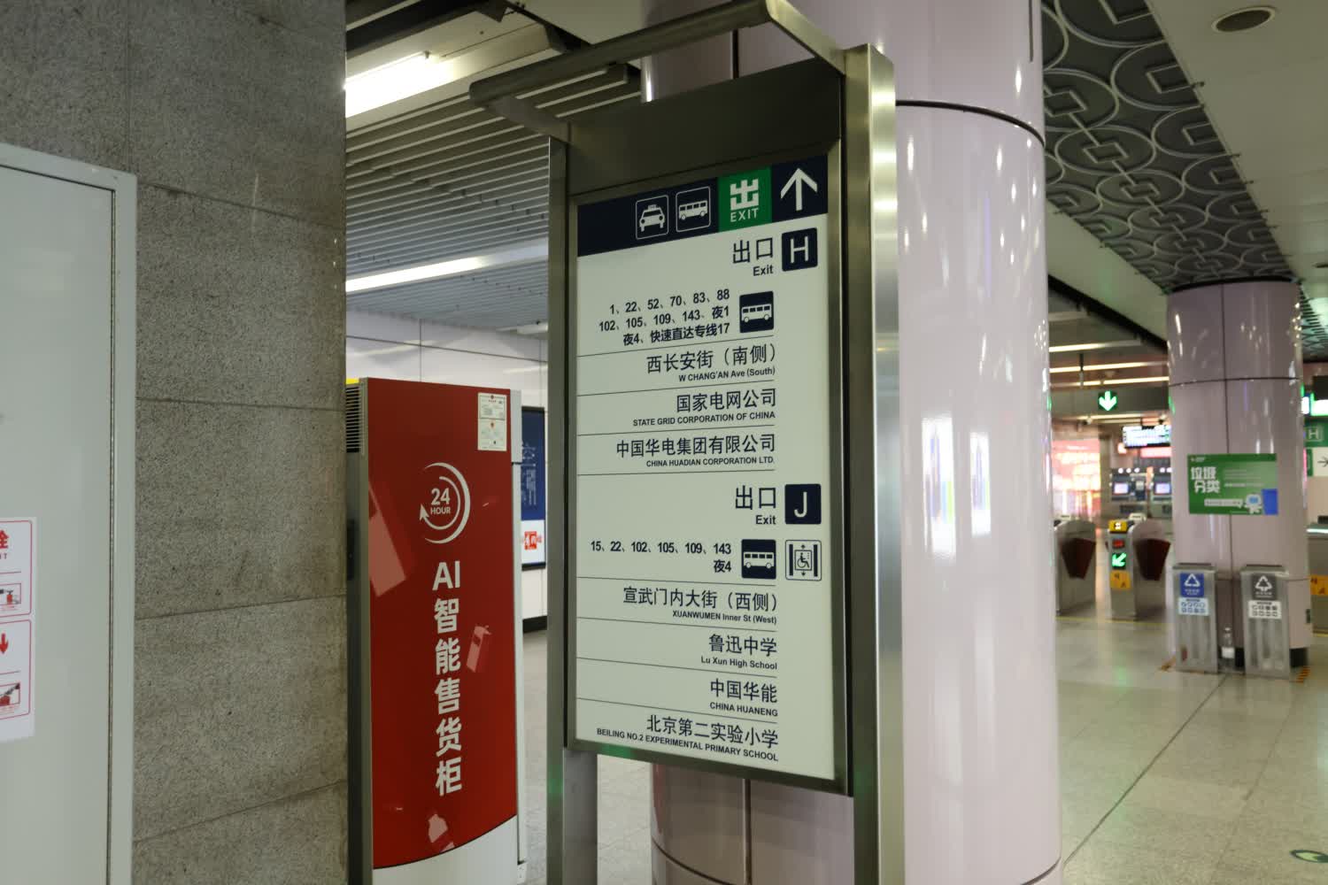 為提升乘客出站後公交接駁效率,京港地鐵對4號線西單站出入口信息牌進行優化調整,將原位於底部的公交接駁信息上移至頂部,並放大字體,使乘客一出站即可快速、清晰獲取周邊公交路線信息,節省出行時間。