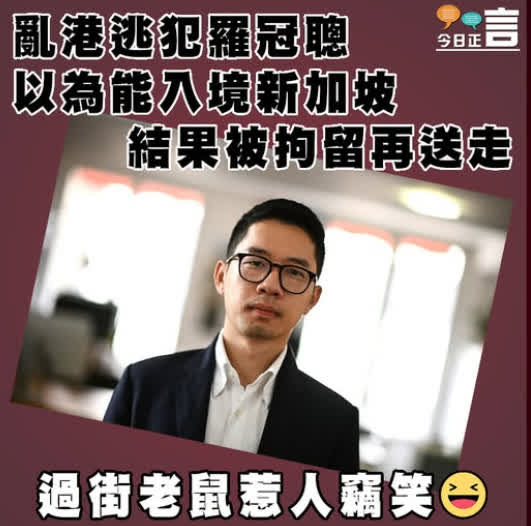 據觀察者網報道,自潛逃海外後,被通緝的亂港分子羅冠聰一度銷聲匿跡,當地時間9月27日,他抵達新加坡參加一場「會議」,但新方拒絕其入境。