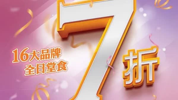 部分餐品七折:大家樂「(午市茶市)燒味台式肉燥飯+茶啡汽水$39」、上海姥姥「拉麵類&川菜類七折」、意粉屋「薄餅類&意粉類可享七折」、丼丼亭「尚·雜錦刺身丼/牛腹肉滑蛋丼·天婦羅配漬物、沙律、麵豉湯七折」、Oliver's Super Sandwiches「肉醬意粉七折」、銀龍冰室「巨人西冷牛扒(8安士)套餐七折」、翡翠拉麵小籠包「蟹粉小籠包七折」、香港富麗敦海洋公園酒店「星耀廳自助午餐及晚餐國慶七折」、牛角系部分餐品……