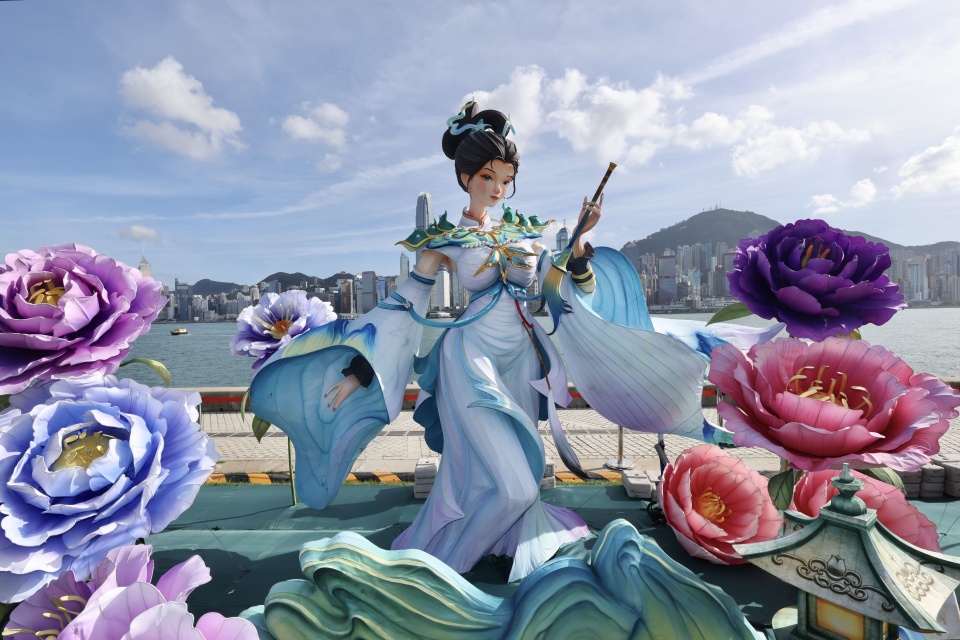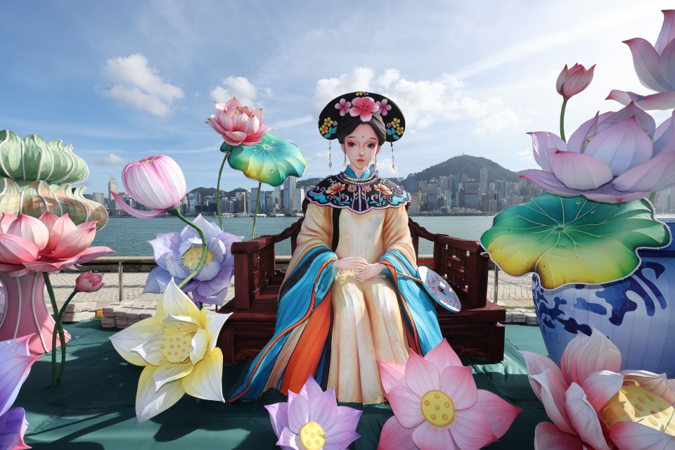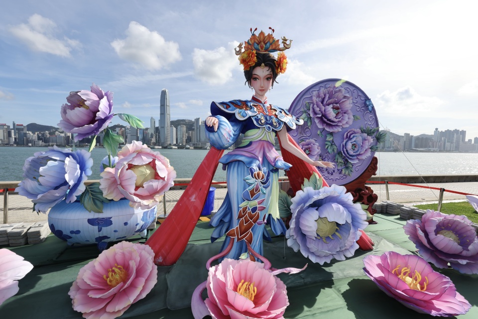 在9月29日開幕儀式上亮燈的「香江仙子」巨型花燈燈組,由4個大型花燈組成,主燈「紫霞仙子」高12.8米,乃目前香港展出的最大單體人物花燈,運用國家級非遺自貢花燈技藝,結合華服等中國傳統文化元素,融合現代光影技術,沿維港岸線陳列,形成獨具特色的燈光景觀。