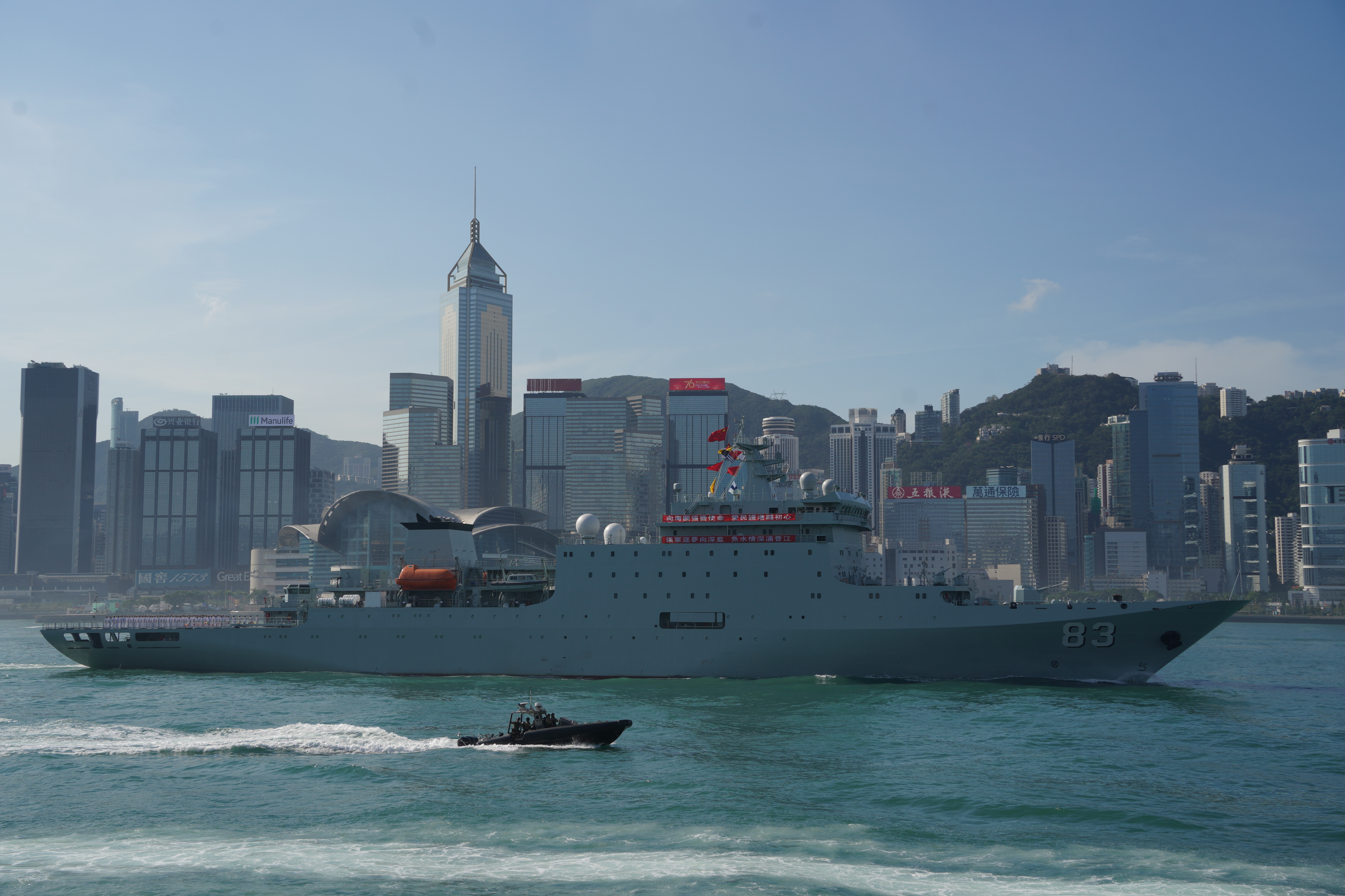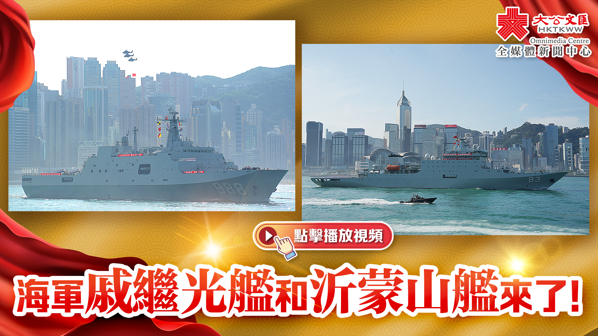 大公文匯全媒體報道,30日上午,中國海軍戚繼光艦、沂蒙山艦抵達香港水域,隨即由宿遷艦和香港特區政府船隻引航,駛向中國人民解放軍駐香港部隊昂船洲軍營。兩艦將在昂船洲軍營舉行艦艇開放活動,接受市民登艦參觀。