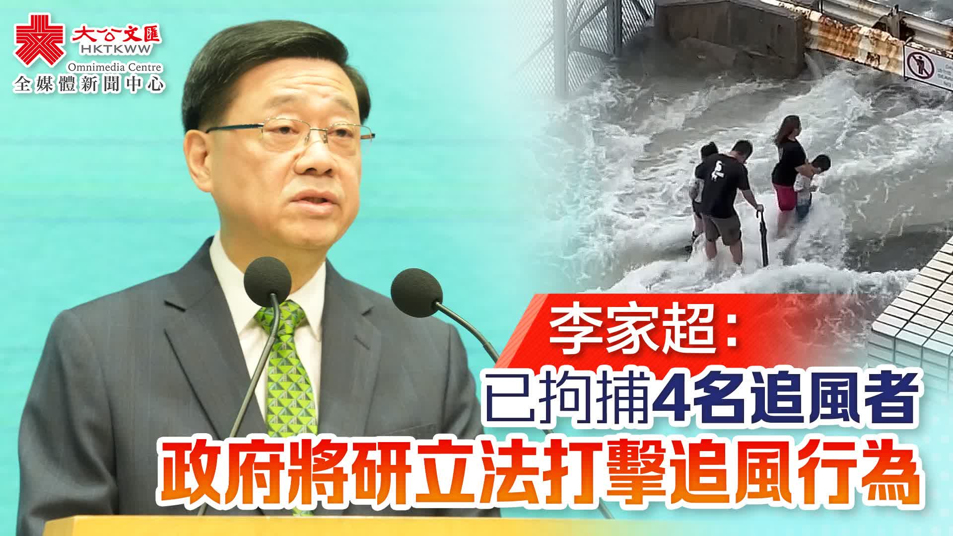 李家超指,有人不負責任追風,帶來風險,有關拯救人員面對生命安全風險,有機會浪費公共資源,減低其他防風措施。社會嚴厲譴責相關行為。警方追究追風行為,已拘捕4人。這是政府對危害安全行為要追究的立場。政府會充分考慮立法禁止追風行為,保安局會做研究。