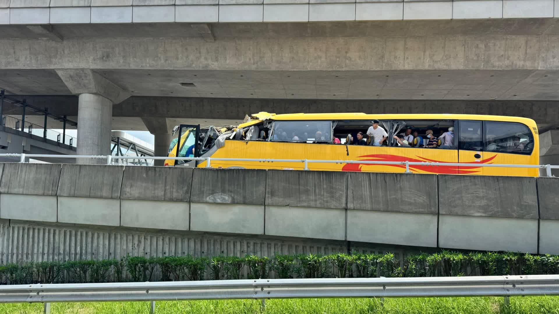 據報,事發時車上載有約45名乘客,其中15人受傷,1人傷勢較嚴重。救援人員迅速到場展開救援,一名頸部受傷的老婦被救護車送往沙田威爾斯親王醫院治療。警方正調查事故原因。現場顯示,旅遊巴車頭嚴重損毀,車頂被削平並凹陷,擋風玻璃碎裂,而該路段的限高為2.4米。