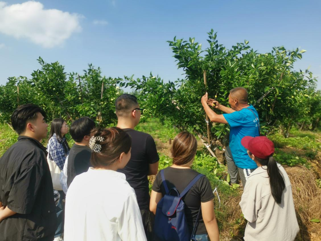 當天,參訪團一行走進四川省丹棱桔橙科技小院,深入了解科技賦能農業的生動案例。科技小院依託高校科研力量,聚焦桔橙品種改良、智慧農業技術推廣,為當地農戶提供技術支撐,有效促進了產業升級。丹棱縣生態源農業發展有限公司負責人、四川省勞模陳波向大家詳細介紹了農產品品牌打造及產銷一體化模式以及當地農戶的參與情況等,充分展現了眉山在生態農業領域「產學研」深度融合的實踐路徑。