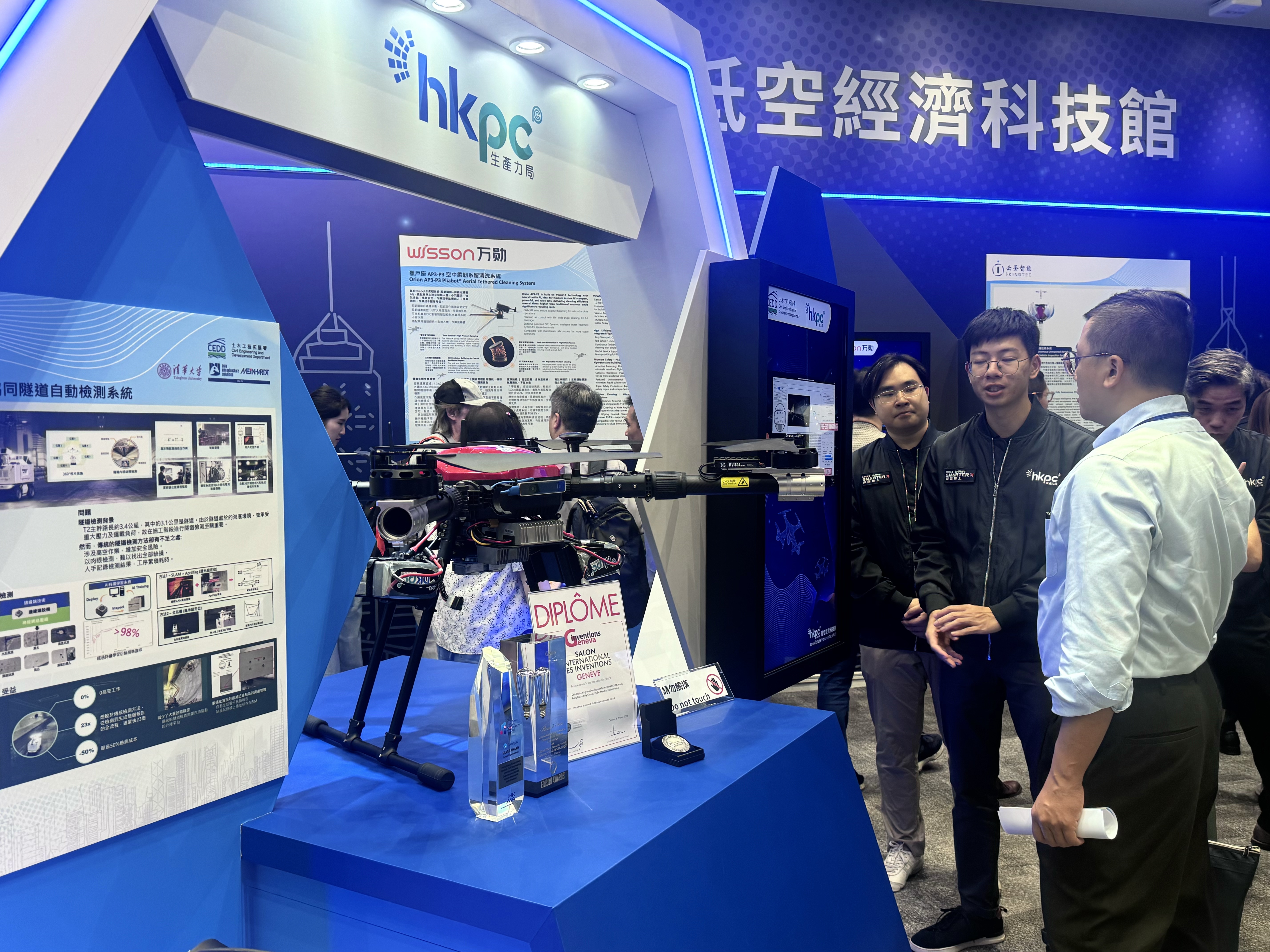 陳祖恒介紹,「低空經濟科技館」除了是展示創新科技的空間,亦是推動制度創新的試驗場。期望透過該平台匯聚政、產、學、研的力量,共同探索高密度城市下的空域管理模式與應用場景,打造具有香港特色的「低空經濟典範」,進一步鞏固香港作為國際創新科技樞紐的地位。科技館展出近20個本地及大灣區在低空經濟領域的尖端技術成果與創新應用,涵蓋載人電動垂直升降飛行器、無人機管理系統、空域管理及地理信息系統等。此外,更設置互動體驗區和「監管沙盒」的實體展示。