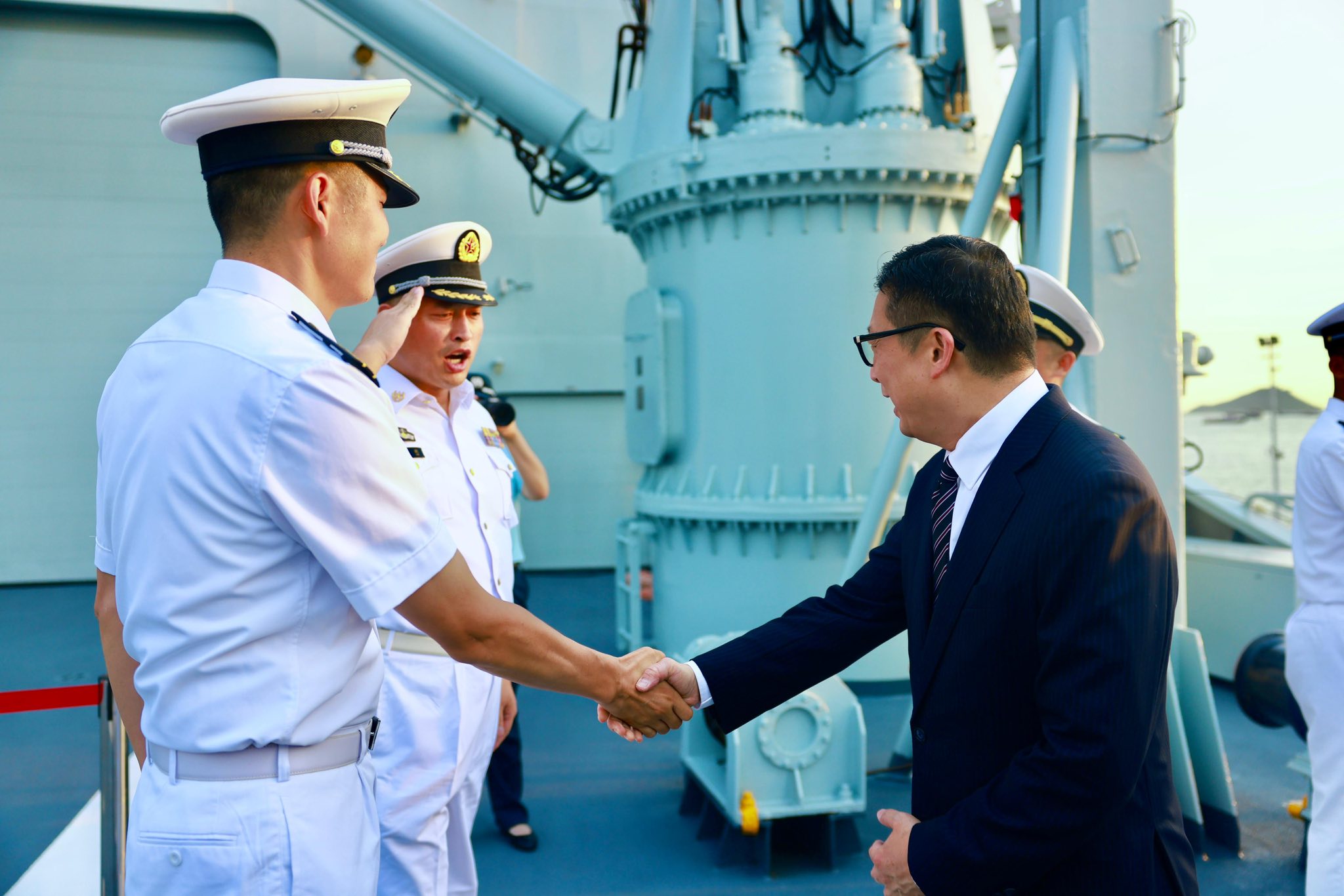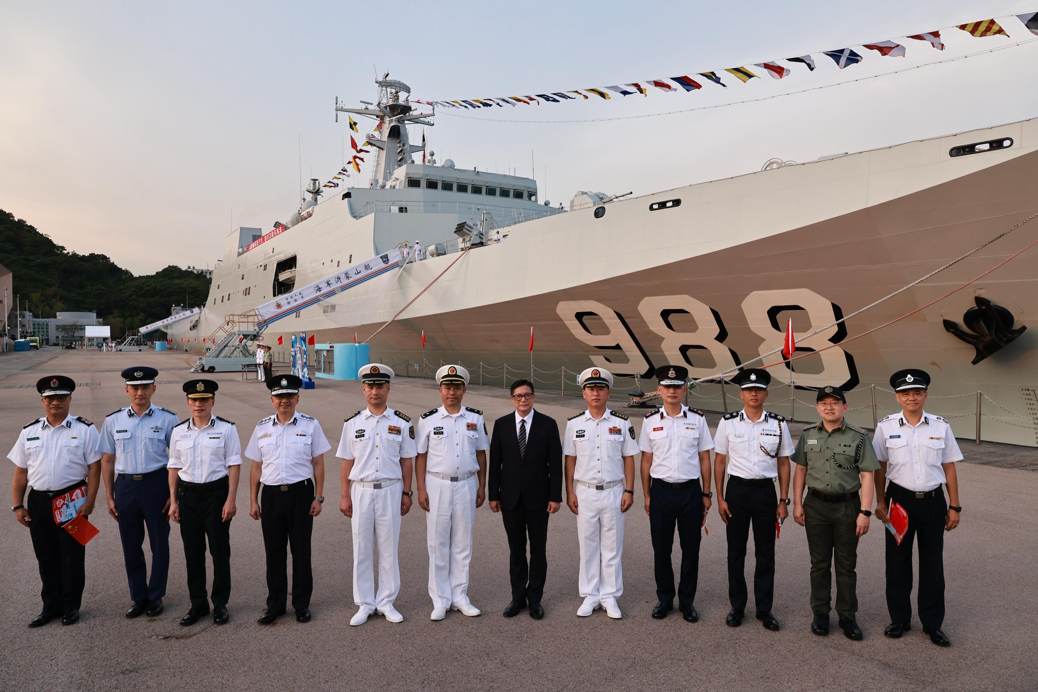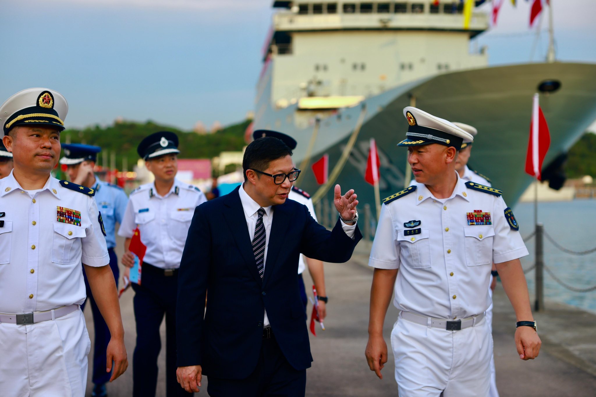 大公文匯全媒體報道,保安局局長鄧炳強今日(30日)下午與一眾紀律部隊首長代表登上首次來港的戚繼光艦和沂蒙山艦參觀,並與解放軍海軍交流。鄧炳強在社交平台發文表示,艦上一系列專業裝備及先進的訓練設施,充分展現國家海軍的現代化實力及多元作戰能力。