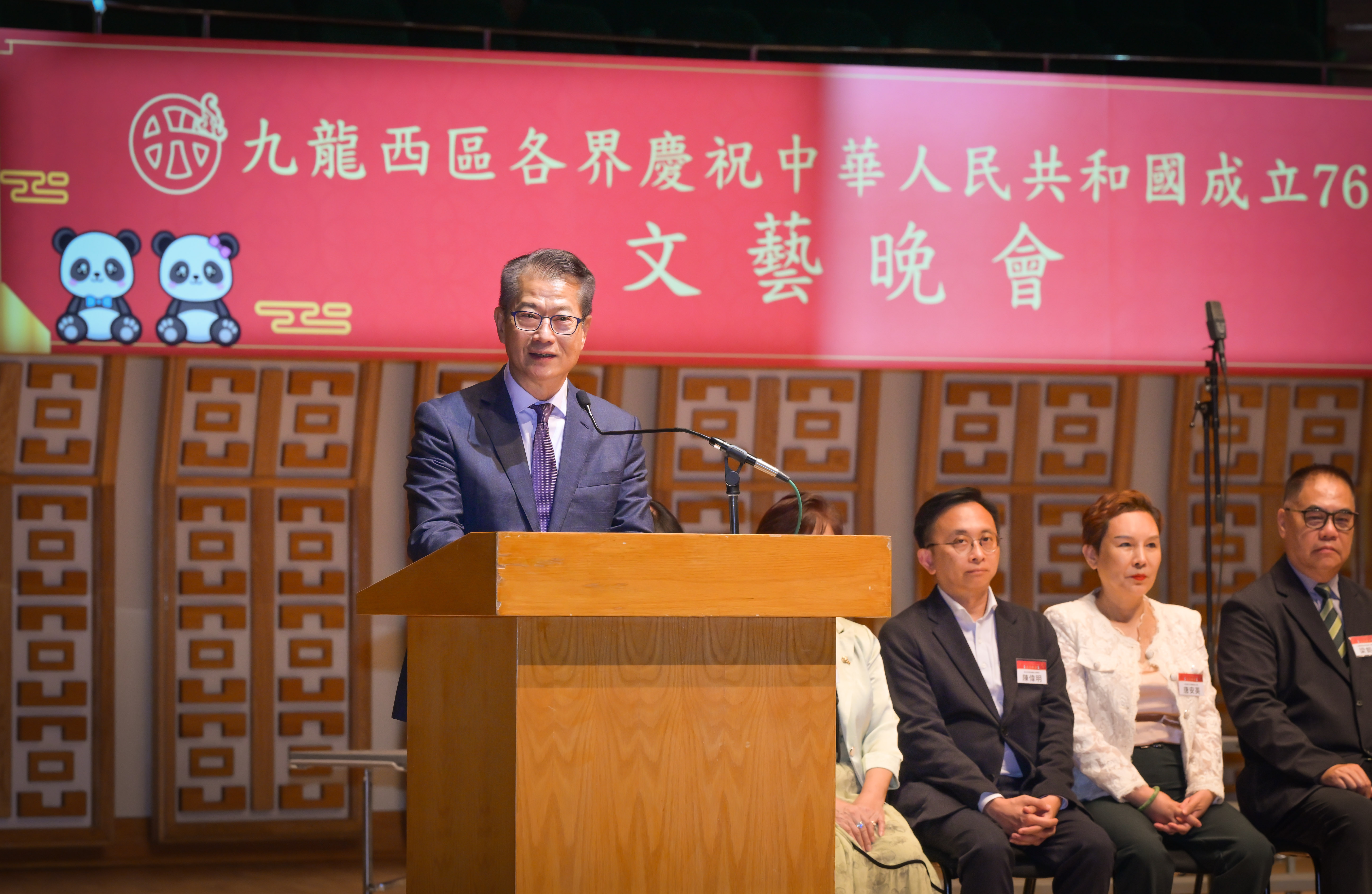 大公文匯全媒體報道,財政司司長陳茂波今日(30日)出席九龍西區各界協會慶祝中華人民共和國成立76周年文藝晚會並發表致辭。
