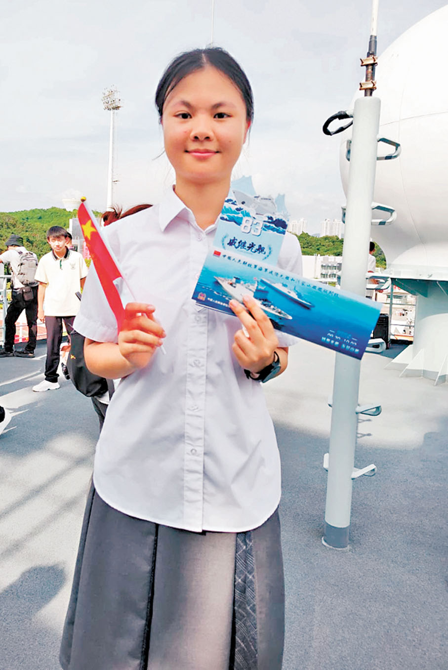 同校的中五學生莫同學這次登艦是初體驗,參觀後覺得很震撼,也為祖國感到驕傲。她之前曾看過閱兵,當時以為解放軍都不苟言笑,但這次登上軍艦與他們接觸,才知道他們其實很親切、很熱情,而莫同學也體會到解放軍的辛苦,但他們身上有一種堅毅的精神,還特別自信,「非常值得我們學習。」
