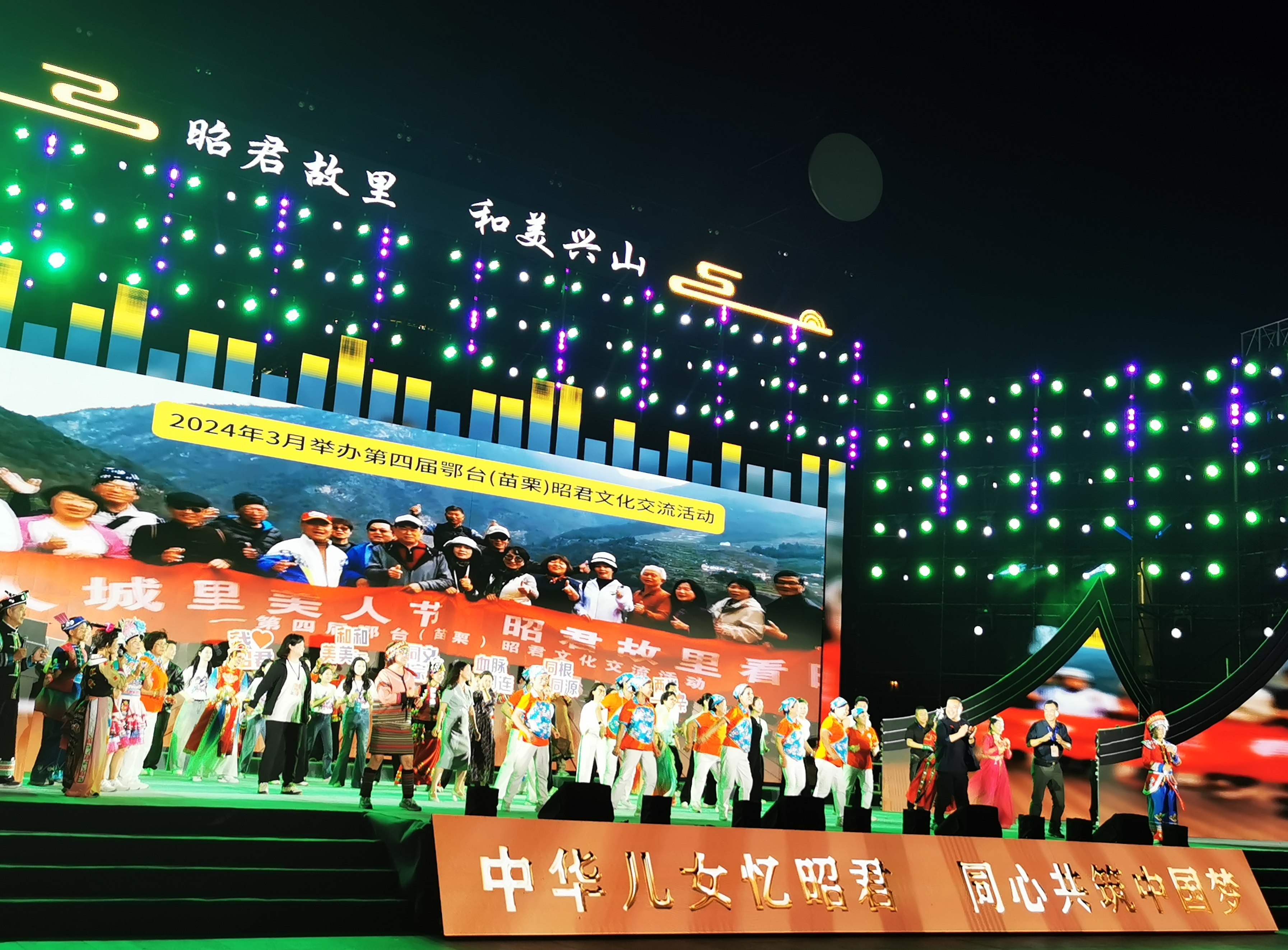 28日晚興山舉行旅遊節開幕式,「昭君故里 和美興山」城市品牌同步發佈。苗栗縣昭君文化協會獻上了《我們都是一家人》歌曲表演,台胞身著民族服飾,邀請現場嘉賓千人同唱,將活動推向高潮。台胞賴女士說:「興山是一個遇見美的地方,這裏是昭君的故里,也是和美之地,我們正共同走向和美的未來。」連續3年赴興山參加活動的苗栗縣昭君文化協會理事潘福田表示:「這場以文化為橋的相聚,早已超越活動本身,成為兩岸同胞心手相牽、共促融合的生動見證。」