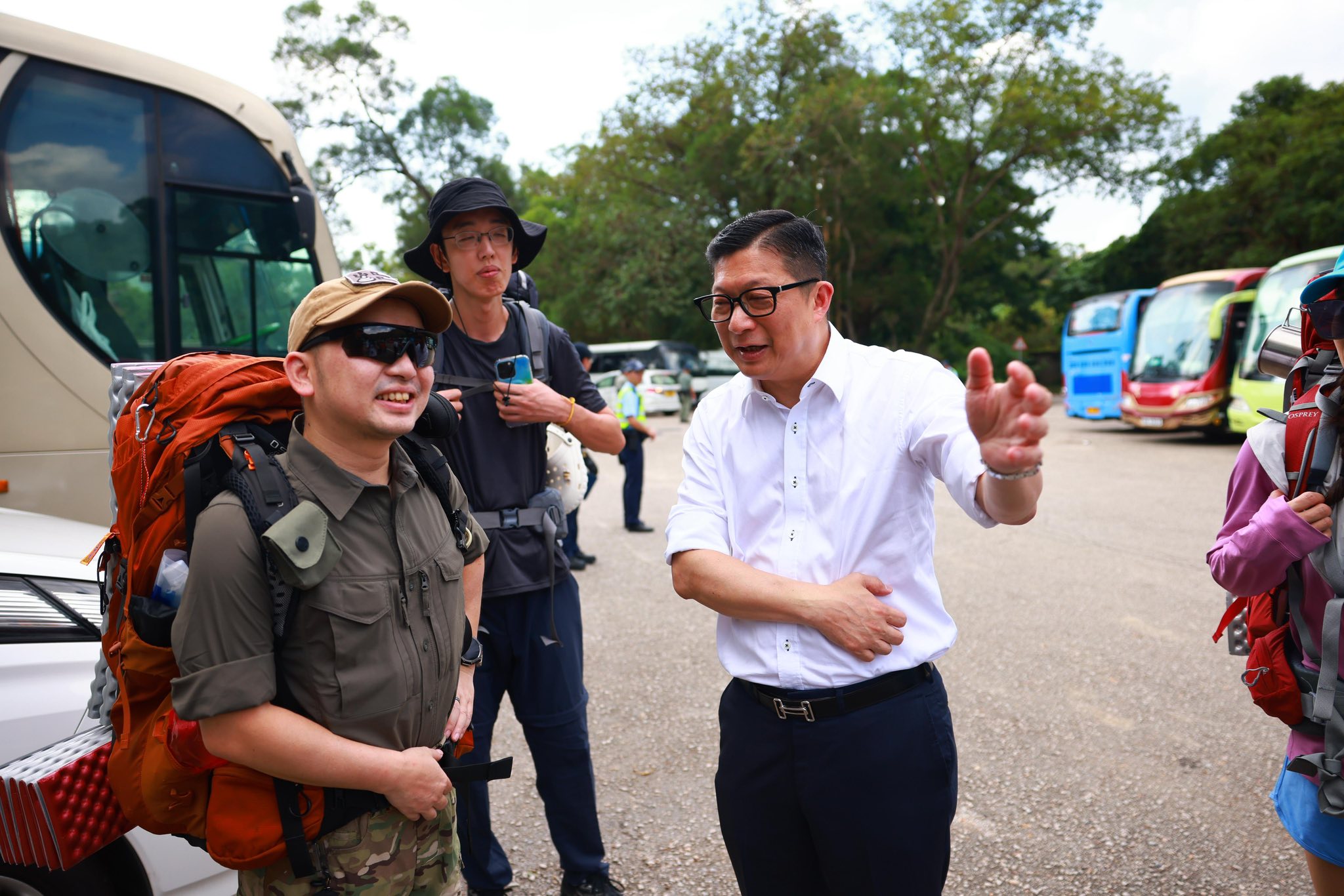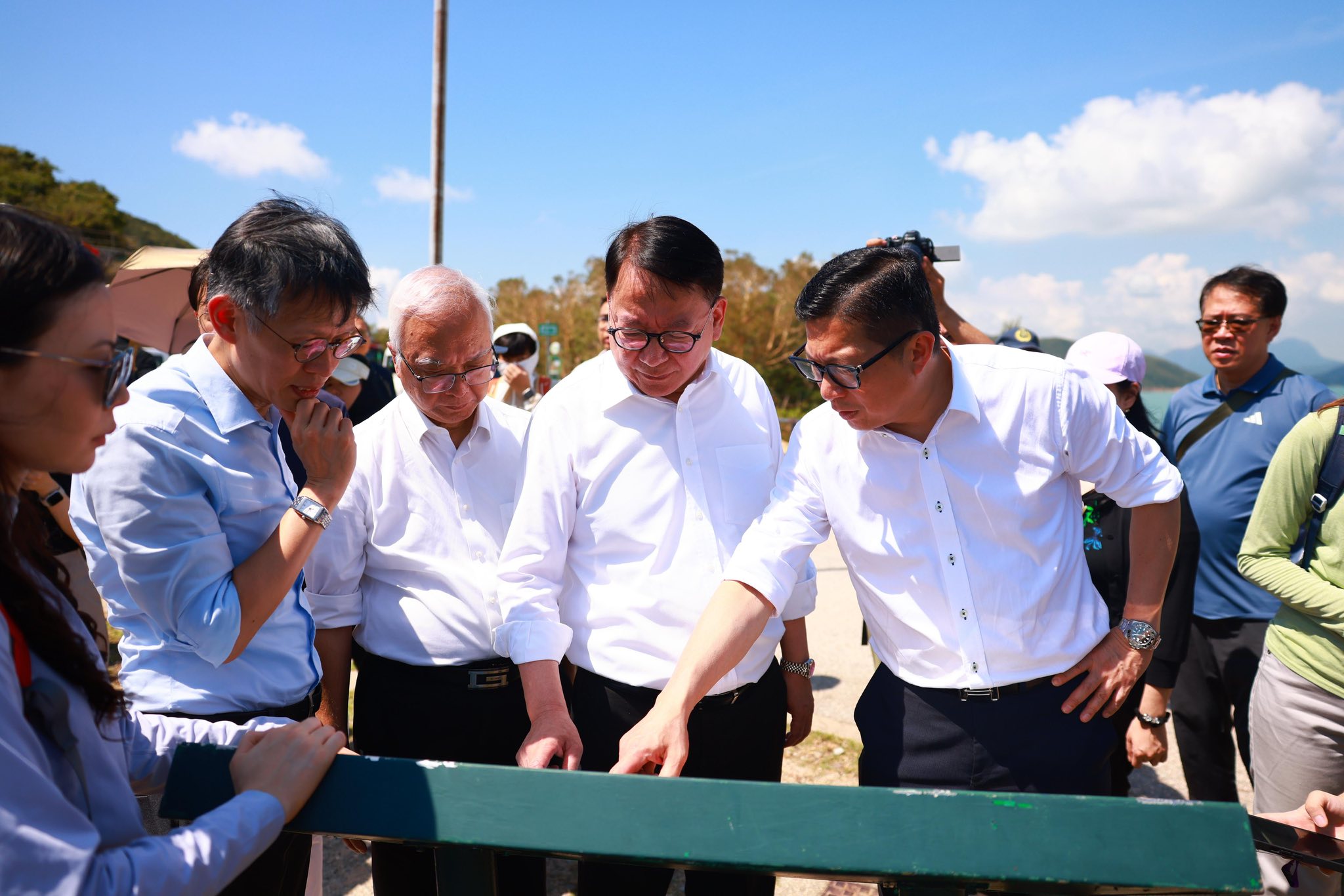 大公文匯全媒體報道,內地十一黃金周假期今日(10月1日)開始。西貢東郊野公園的萬宜水庫風景秀麗,一直是市民及遊客行山打卡熱門景點,由於預期會有大批遊人十一黃金周假期前往萬宜水庫東壩一帶郊遊,當局早前公布採取六項優化措施疏導人流,包括黃金周期間大幅加密小巴服務、調派軍裝人員巡邏等。政務司司長陳國基、保安局局長鄧炳強、環境及生態局局長謝展寰等多名官員,今早亦到西貢北潭涌萬宜水庫東壩一帶視察。
