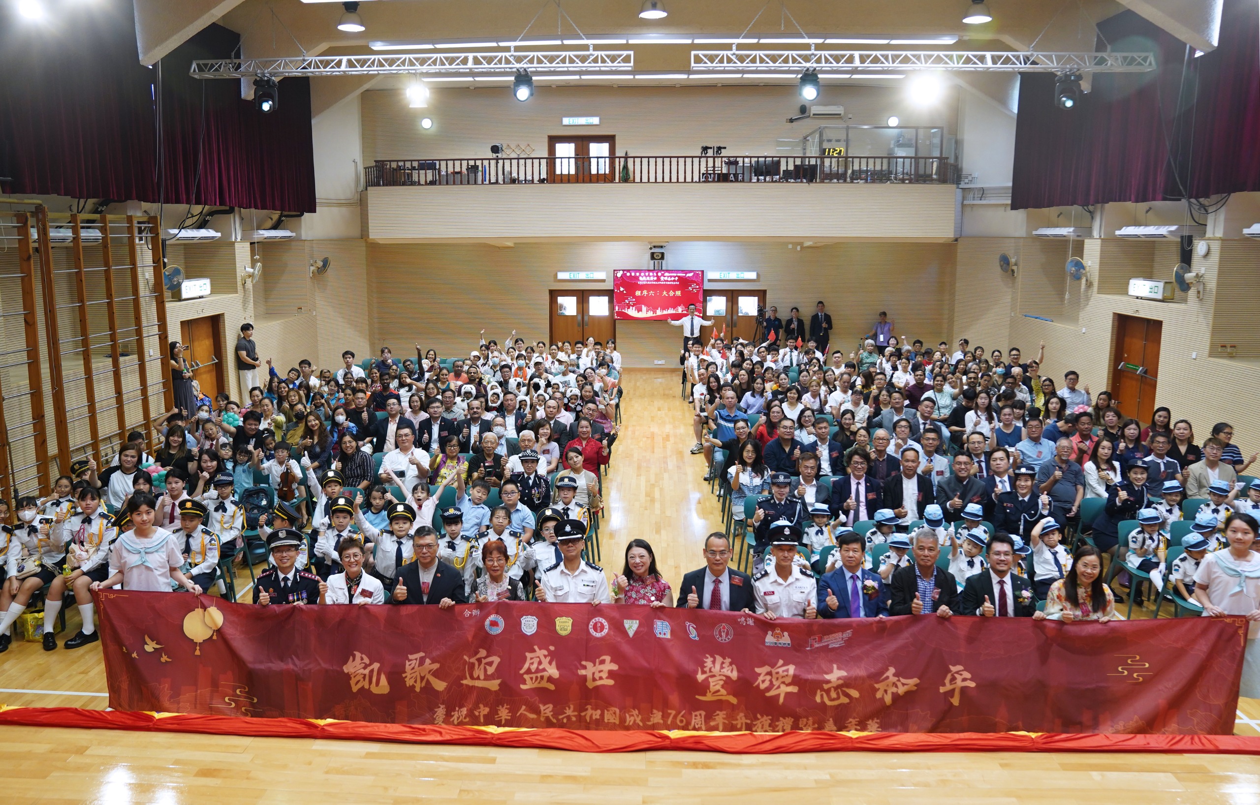 大公文匯全媒體報道,為慶祝中華人民共和國成立76周年,香港教育工作者聯會黃楚標學校、香港升旗隊總會、離島婦聯、東涌安全健康城市、東涌青年會、傳薪火協會及香港離島區各界協會合辦「凱歌迎盛世 豐碑誌和平」慶祝中華人民共和國成立76周年升旗禮暨嘉年華。現場匯聚政府官員、社區賢達、師生及家長約500人同申慶賀。