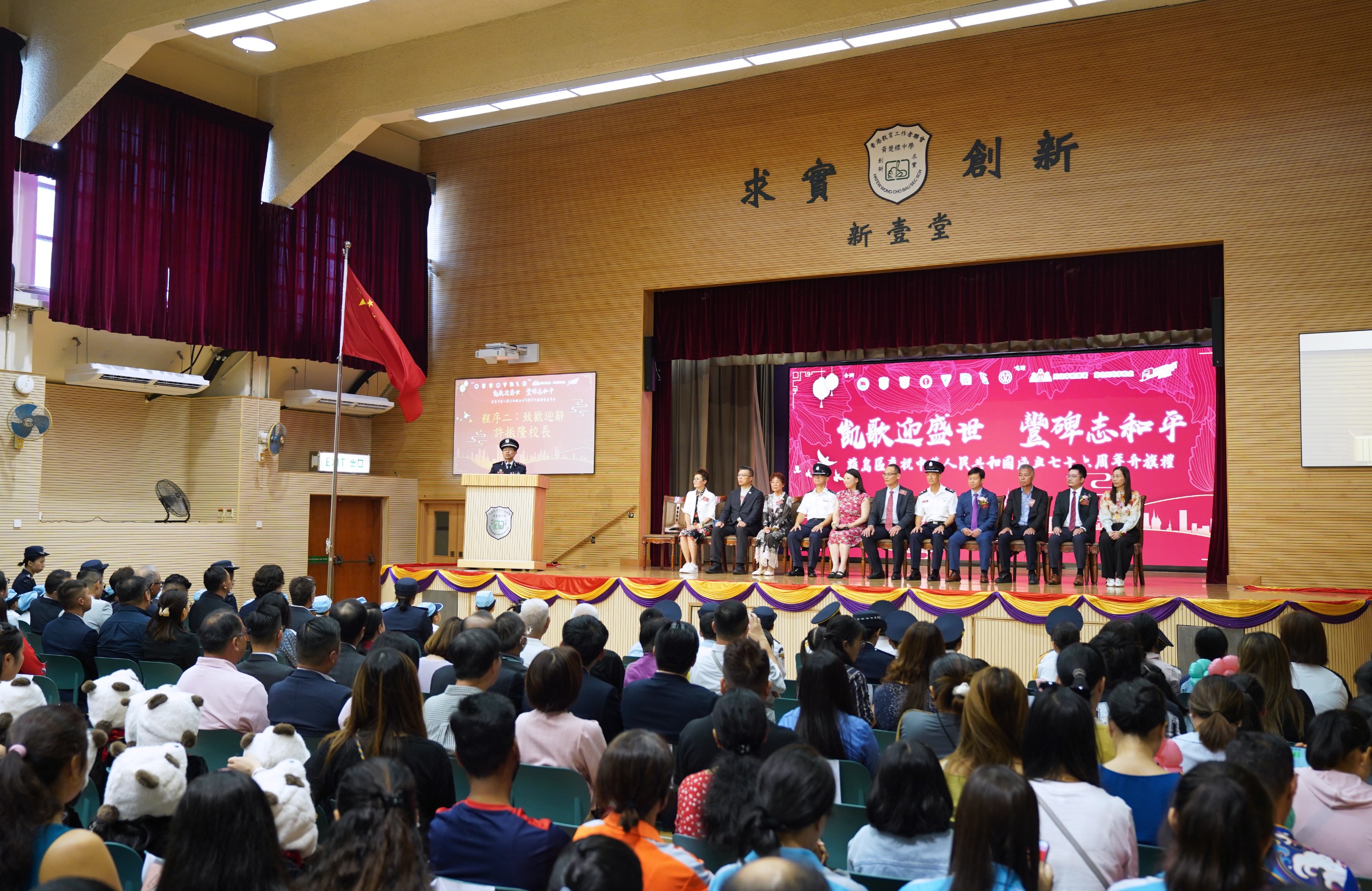 離島民政事務專員楊蕙心強調,新中國成立以來實現偉大復興,從世界大國邁向強國。她呼籲社會銘記歷史、珍愛和平,弘揚抗日精神,在「一國兩制」下共促發展,並祝願國家繼續富強昌盛。