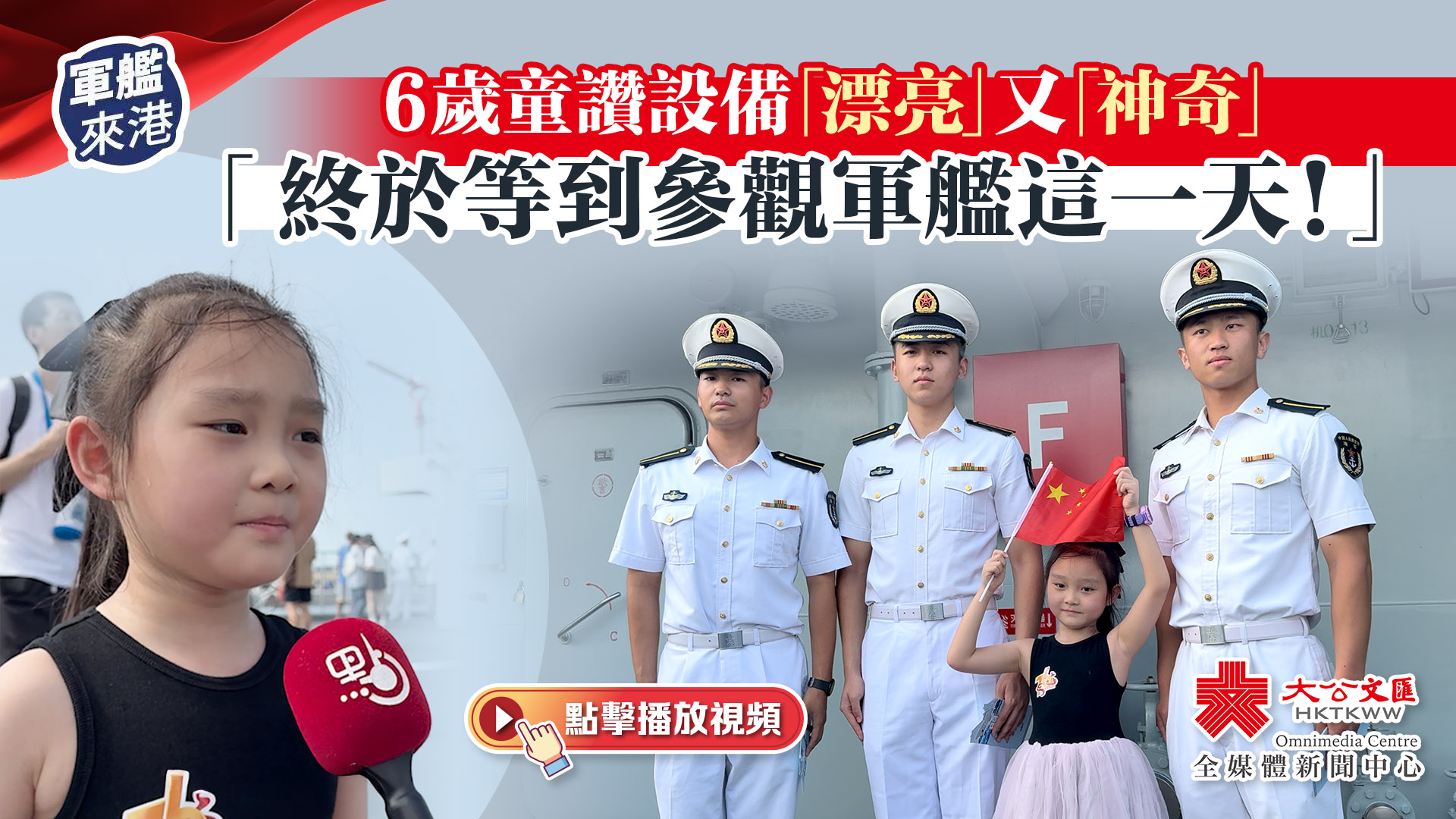 大公文匯全媒體報道,由海軍戚繼光艦、沂蒙山艦組成的83艦編隊今日(10月1日)在昂船洲軍營舉行艦艇開放活動,大公文匯全媒體記者今日亦登艦見證港人參觀軍艦的激動與興奮。就讀小學一年級的6歲半張小朋友表示,她從未參觀過軍艦,「終於等到這一天了」,上艦後非常開心。她表示軍艦上「東西都好帥」,她還在講解中了解到,有的設備可以潛水,有的則支持水上運作,讚它們「漂亮」又「神奇」。