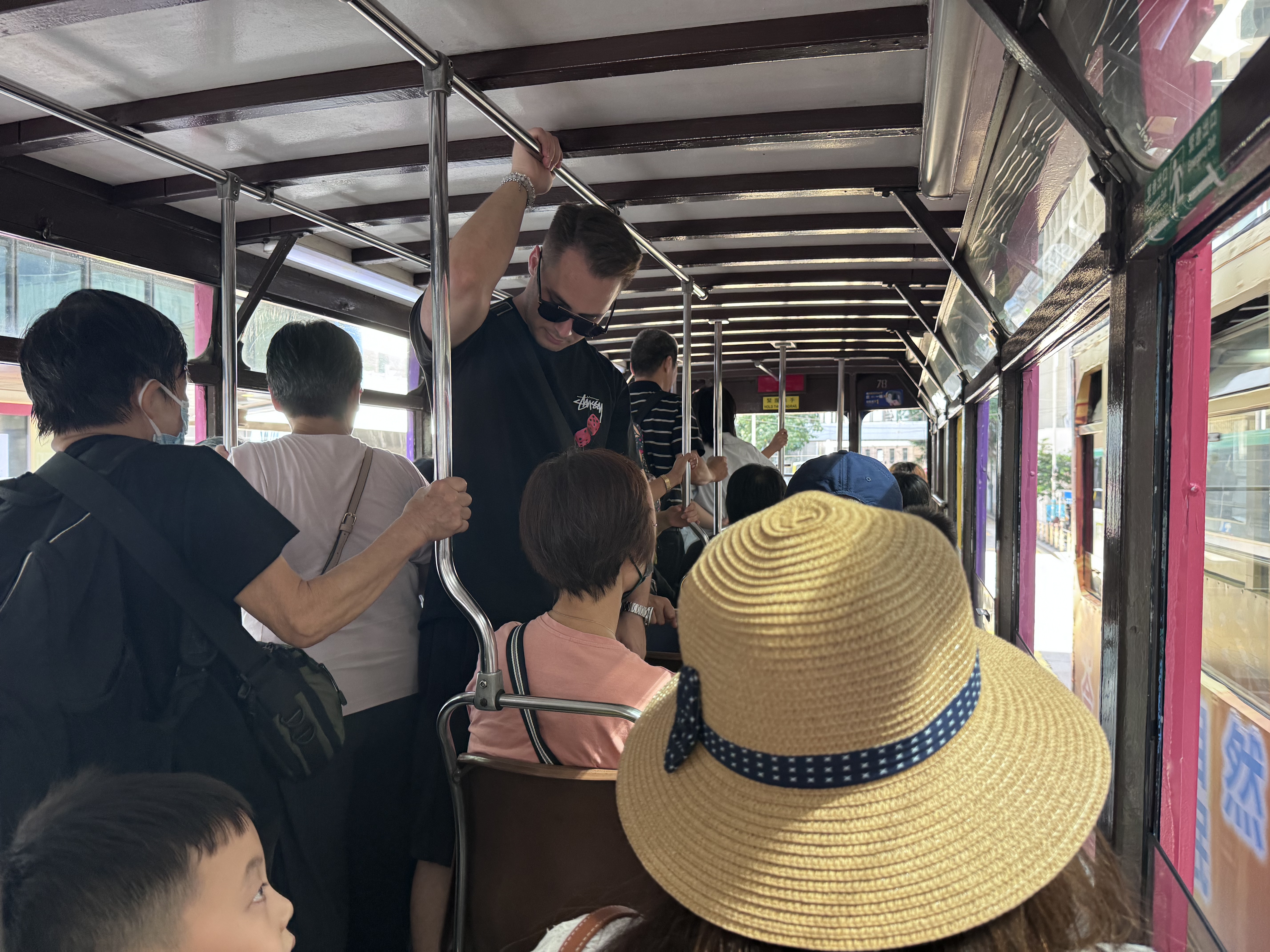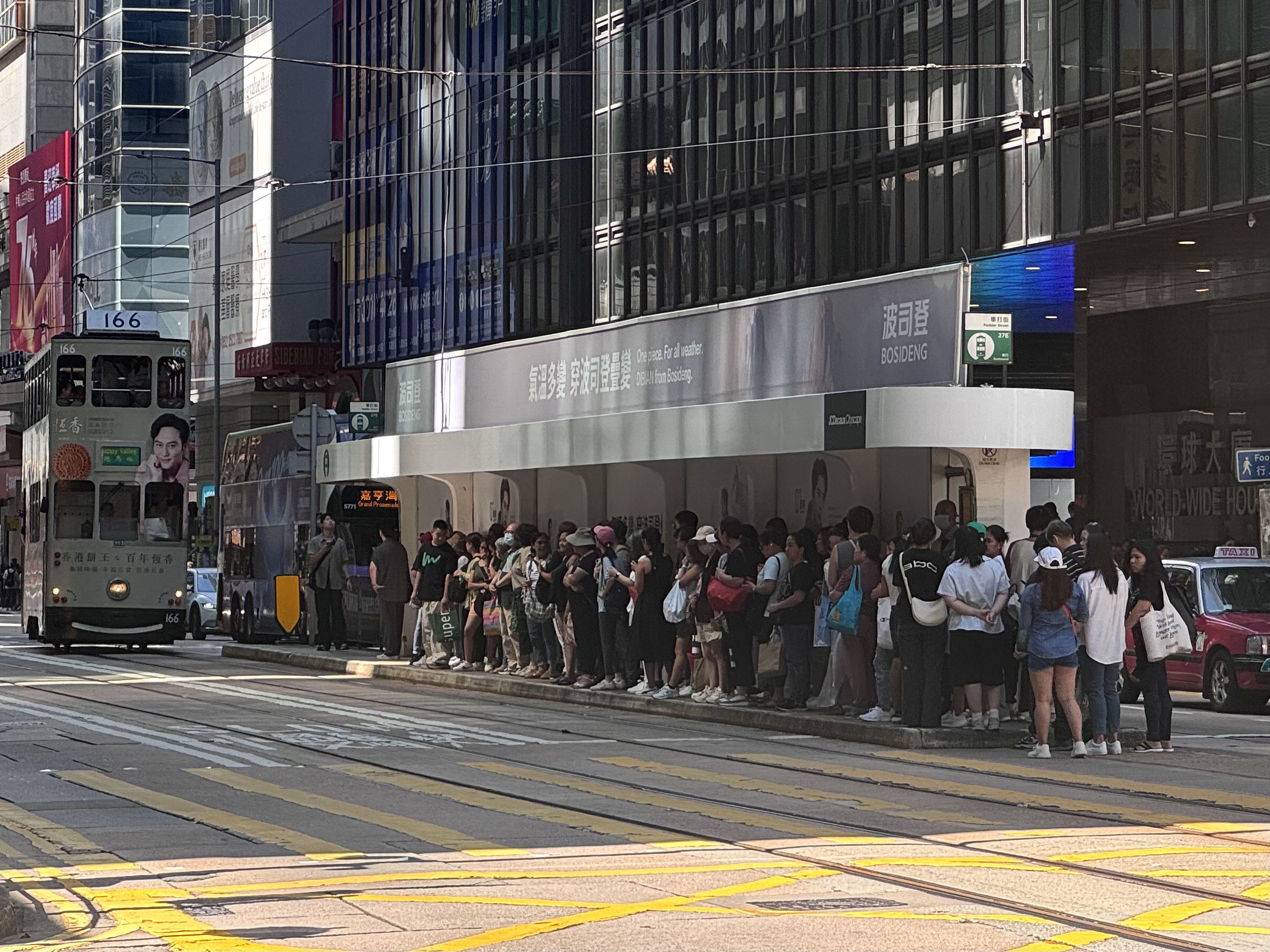 隨後,記者於中環實測免費乘搭電車前往金鐘港鐵站。下午2時,記者到達畢打街車站,此時車站內已站滿人,不過電車的班次密集,在等待第3輛車後,記者於下午2時05分順利上車。電車內雖然滿員,但並不擁擠,沿途每一站都有約20人排隊等候,且隊伍秩序良好。